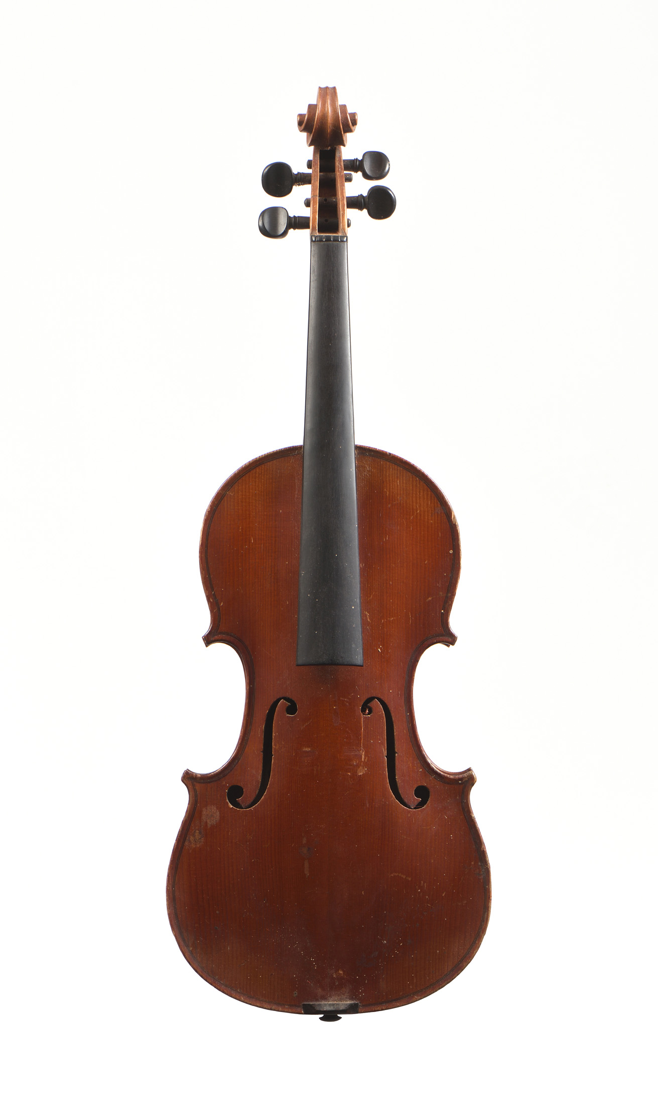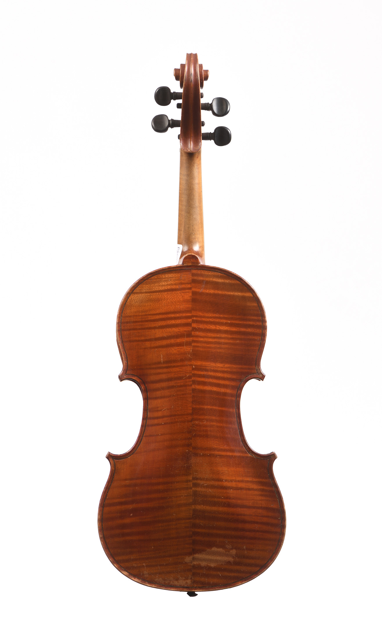 portant une étiquette "Antonius Stradivarius... 1717.". Fond de deux pièces. Vernis brun orangé sur fond doré. Cassure à l'f. 357 mm. Usures. Avec archet.