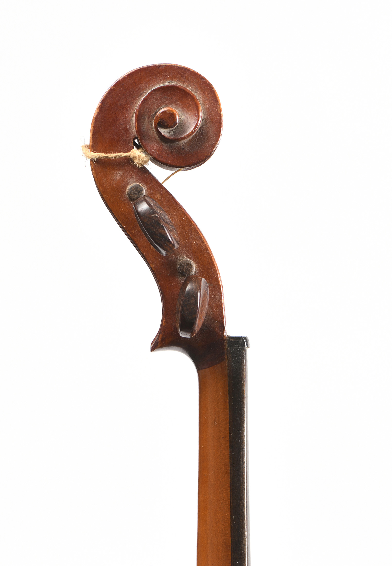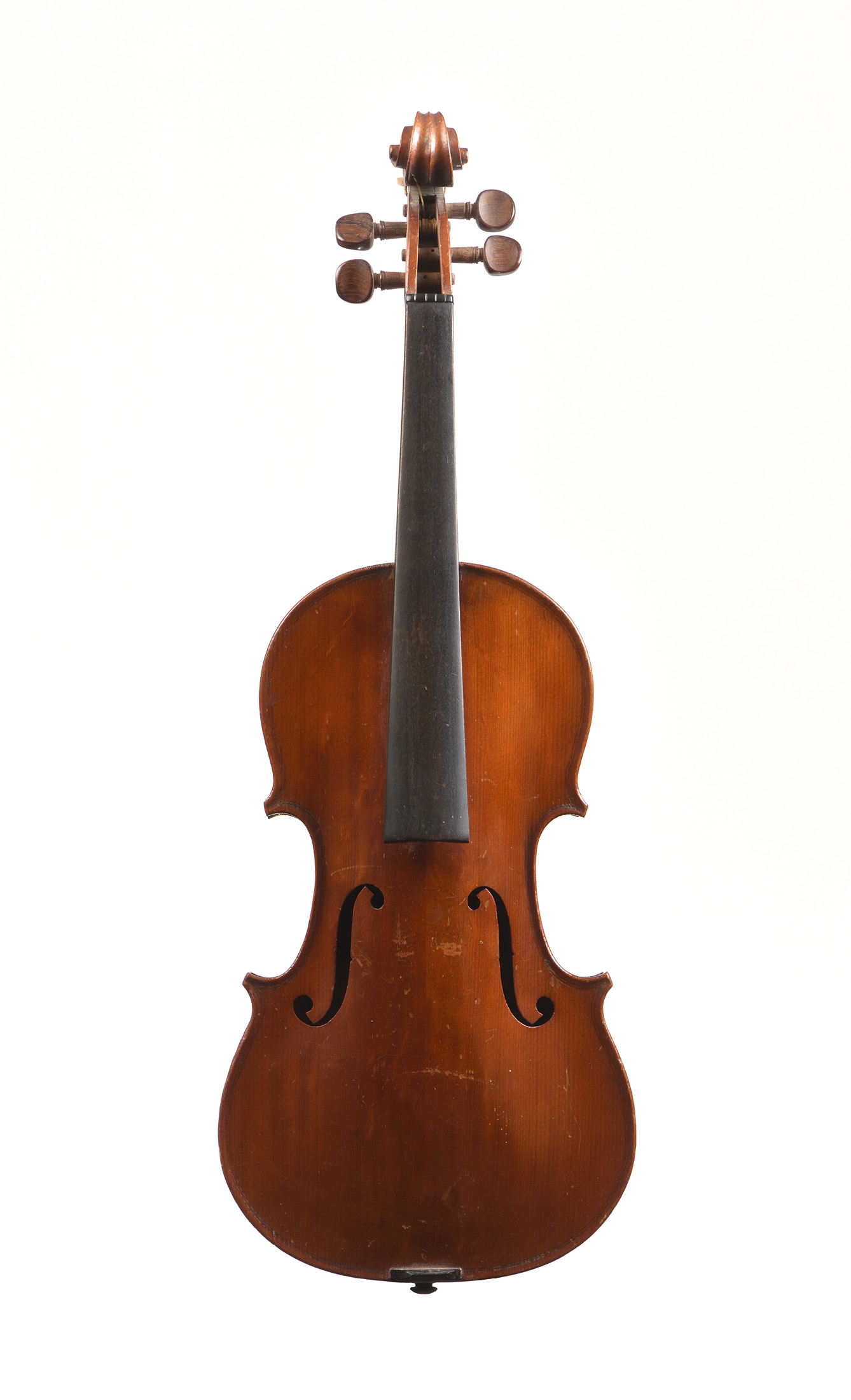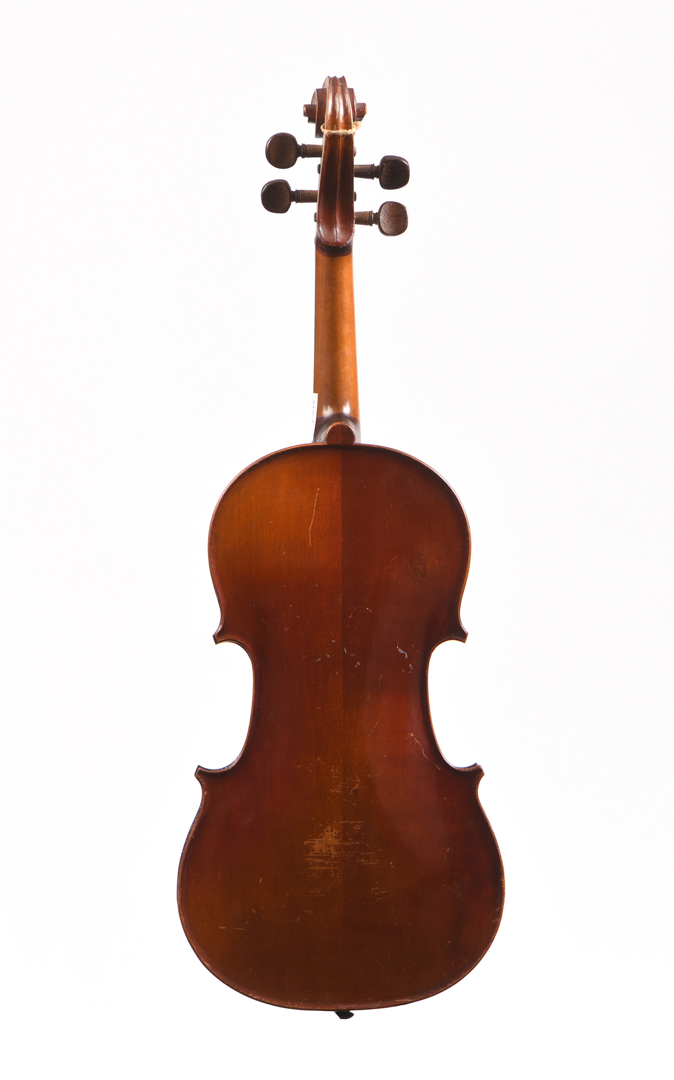 Violon d'étude, probablement fait à Mirecourt. Sans étiquette. Filets gravés. Vernis brun sur fond doré. Fond de deux pièces.