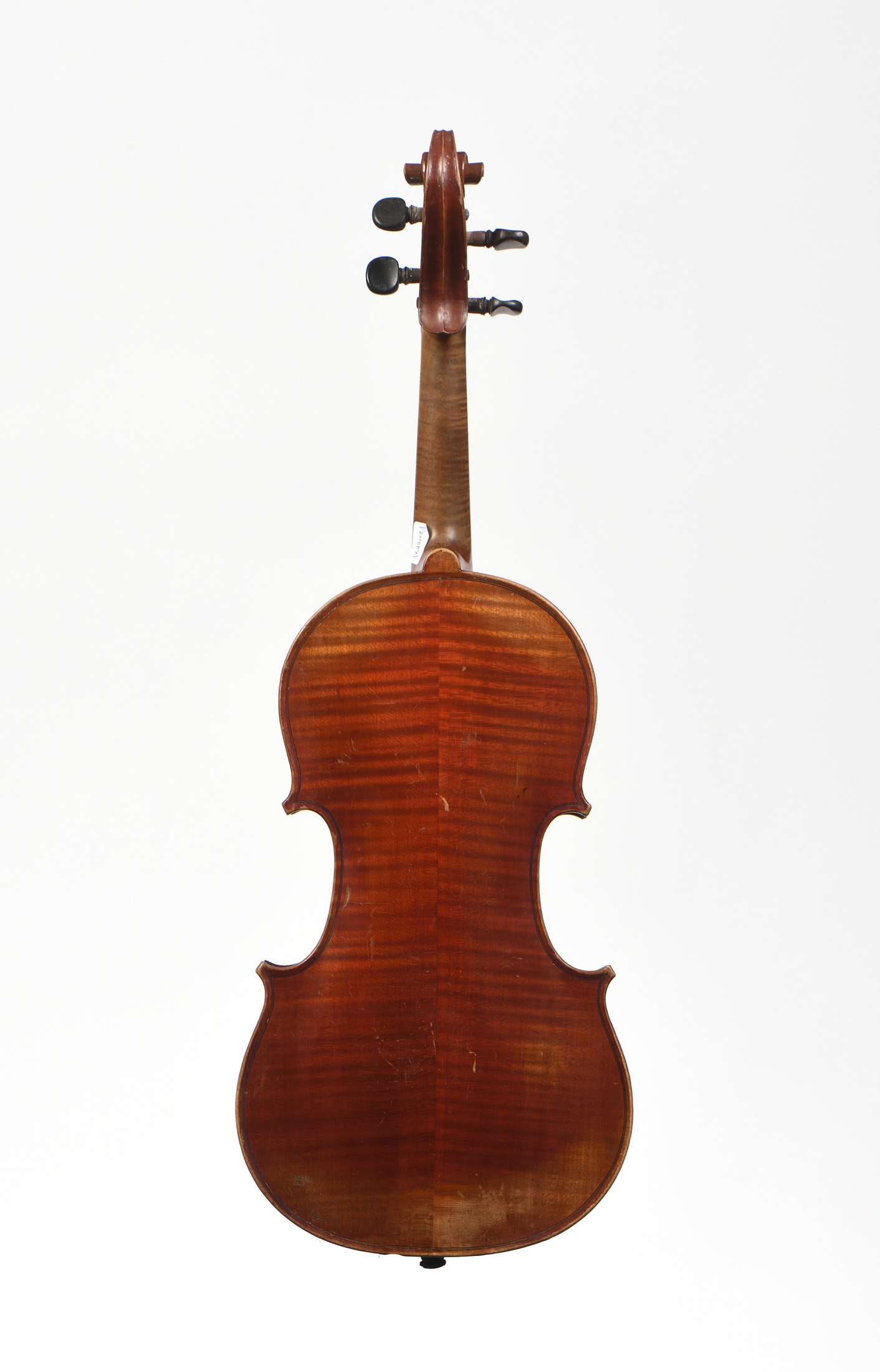 portant une étiquette Stradivarius Cremonensis 1665. Fond de deux pièces. Vernis brun rouge sur fond doré. Une cassure à la table. 358 mm.