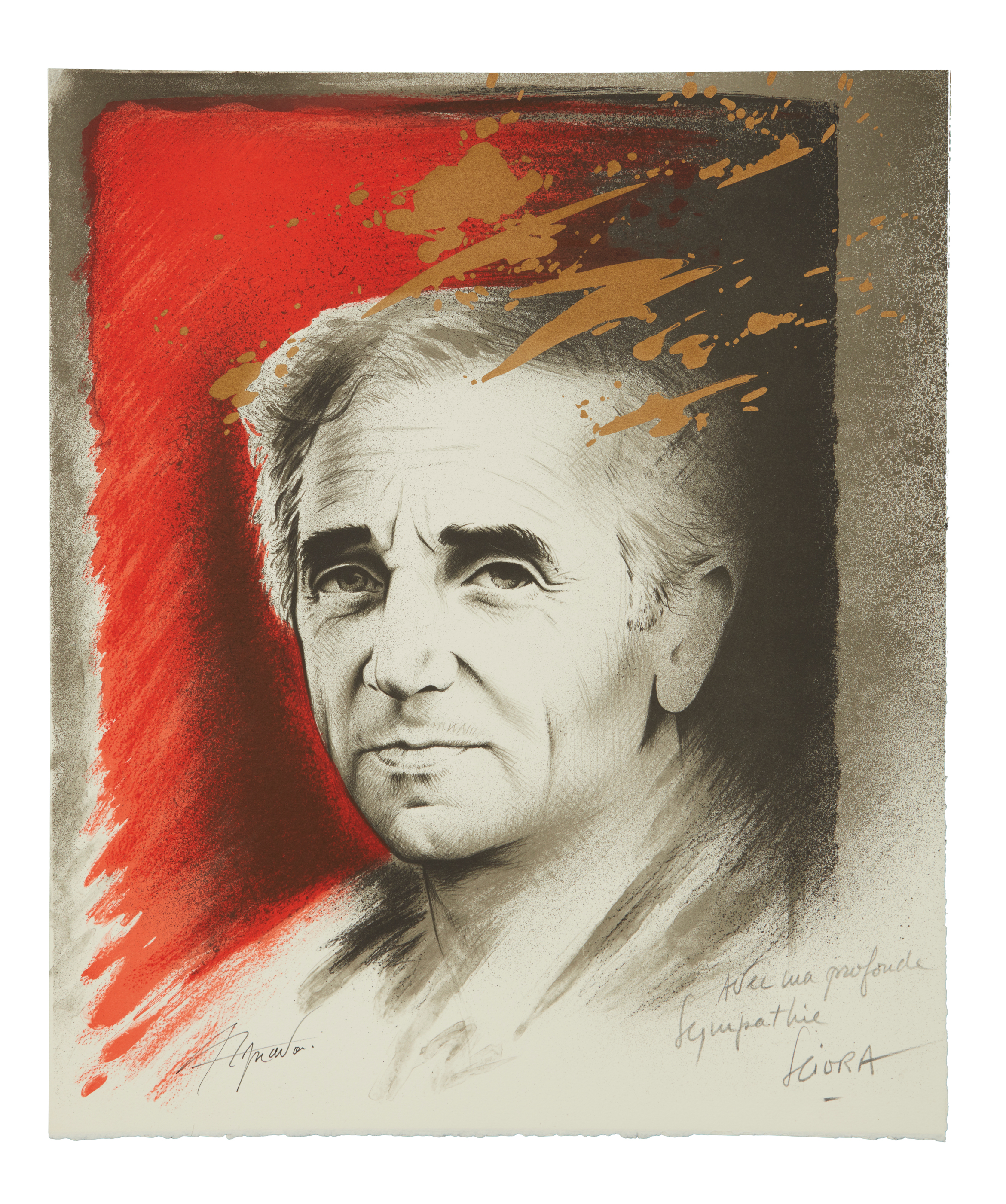Signée par l'artiste et par Aznavour.