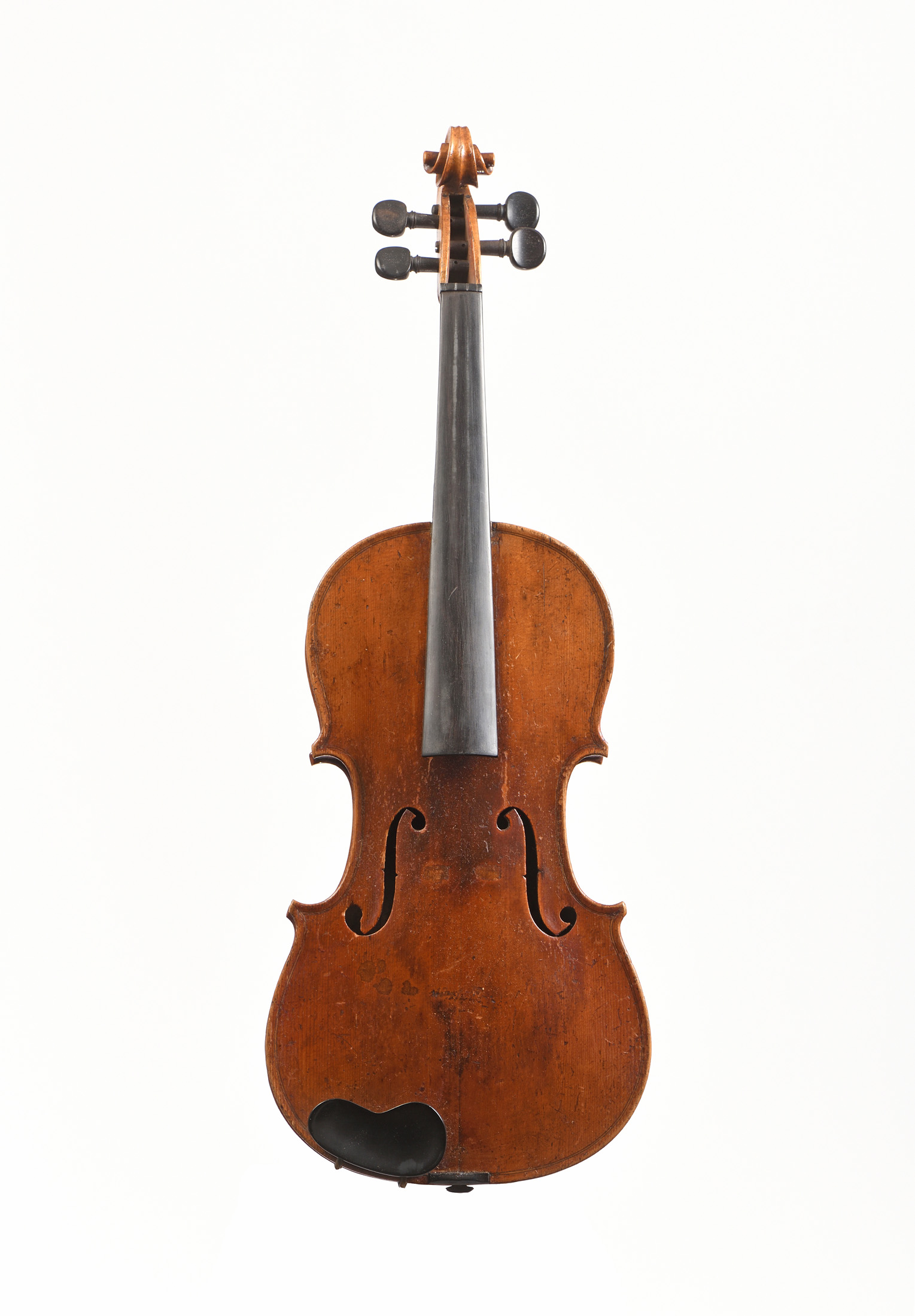 portant une étiquette "Stradivarius 1715". Fond d'une pièce. Vernis brun doré. Diverses cassures.