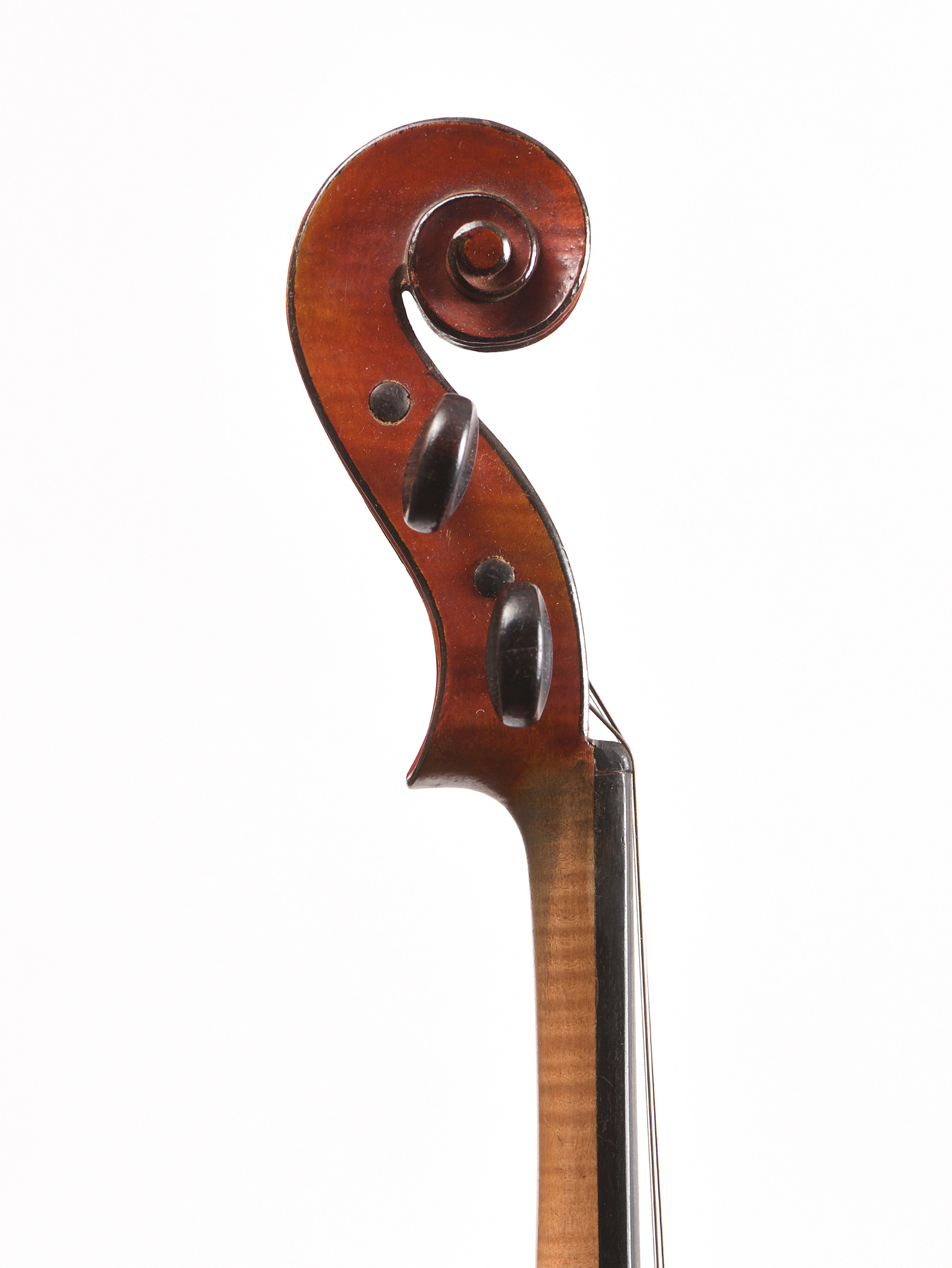 portant une étiquette apocryphe "Jean Baptiste VUILLAUME...". Fond de deux pièces. Vernis brun rouge. Diverses cassures. Joint du fond à revoir. 359 mm.