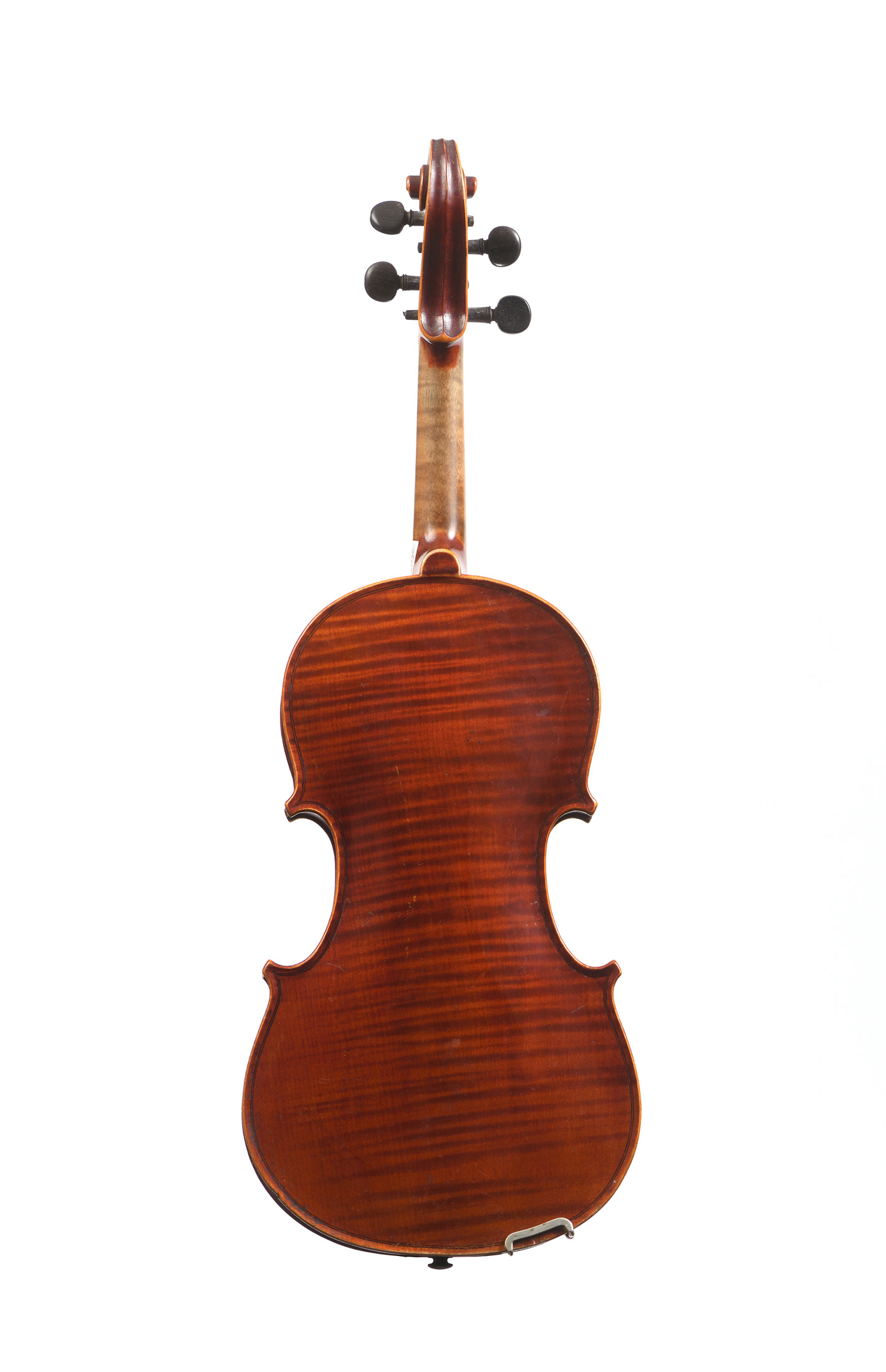 fait dans les ateliers Jerome Thibouville Lamy, portant une étiquette "THIERY A PARIS". Vernis brun rouge, Fond d'une pièce en bel érable bien ondé. 356 mm.