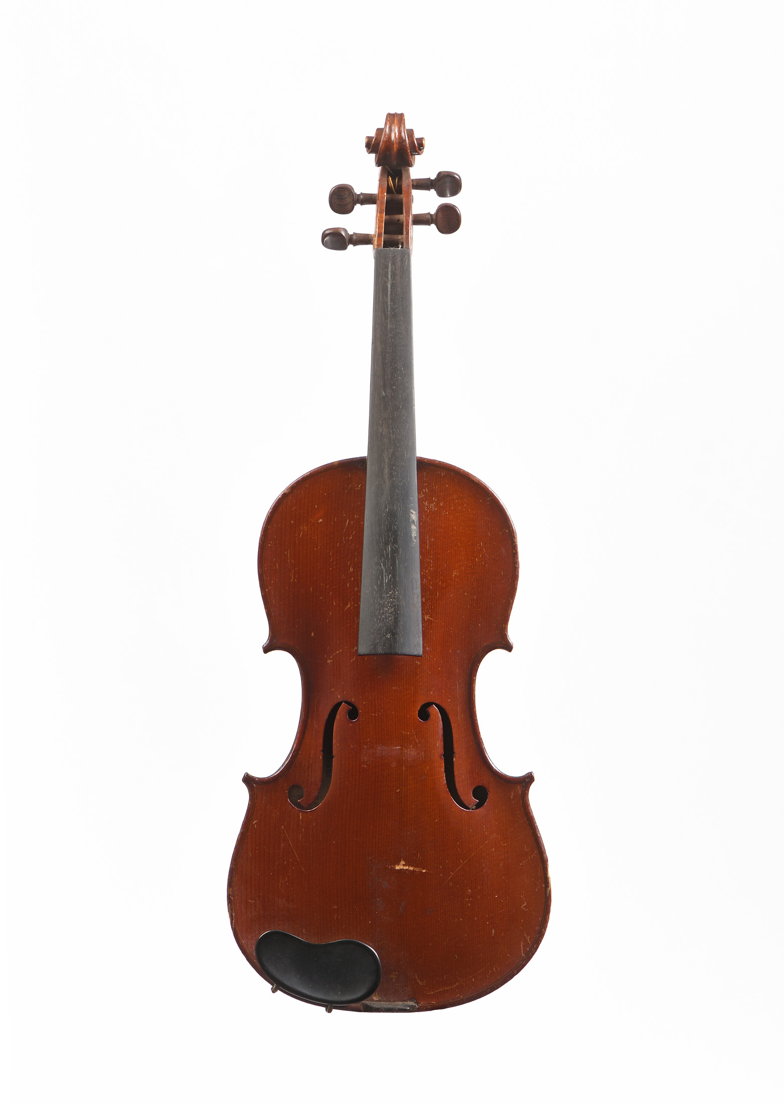portant une étiquette Mathias ALBANI...1900". Fond d'une pièce. Fait chez ULLMANN à Paris vers 1900. Vernis brun sur fond doré. Usures. Cassure d'âme à la table.