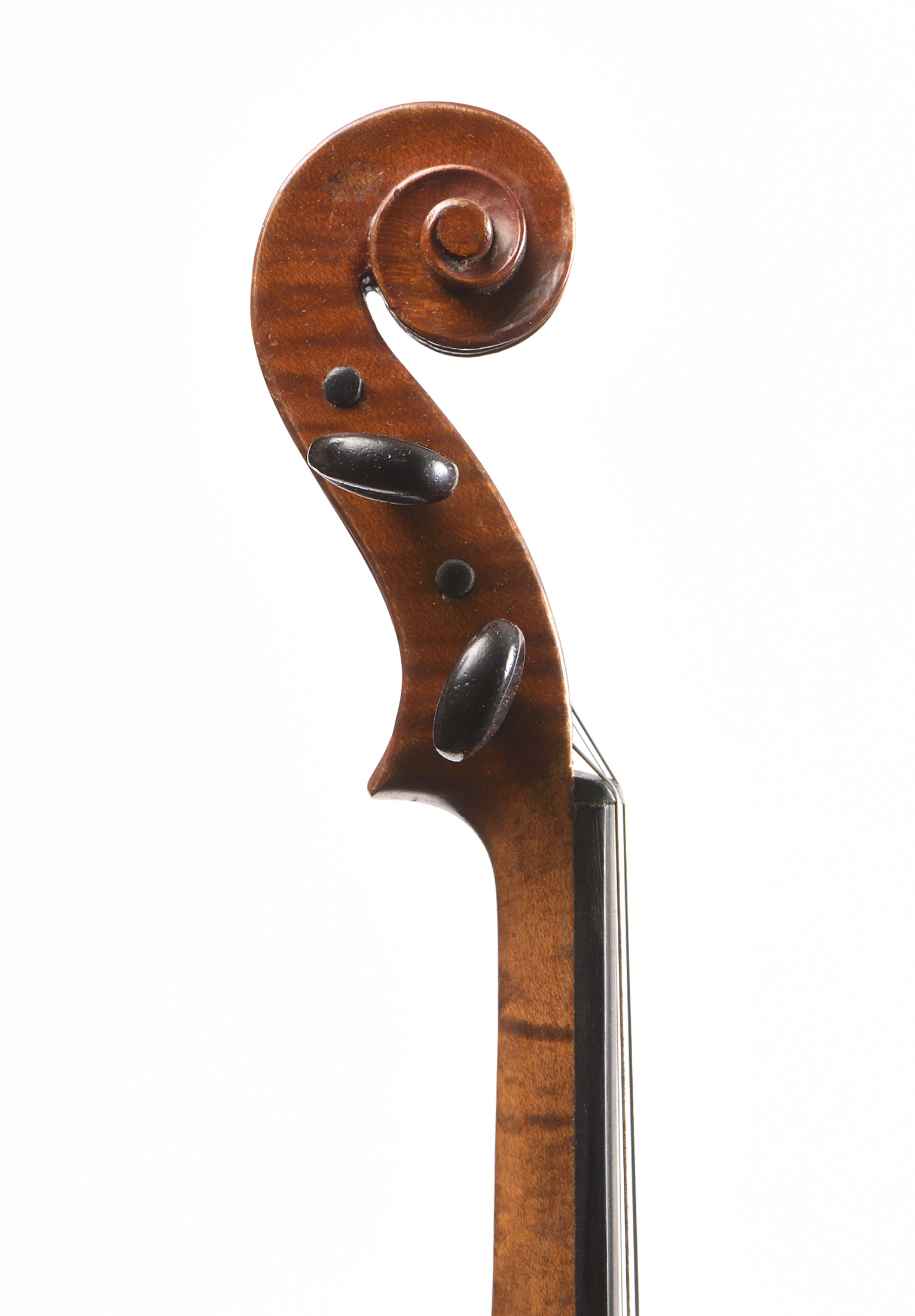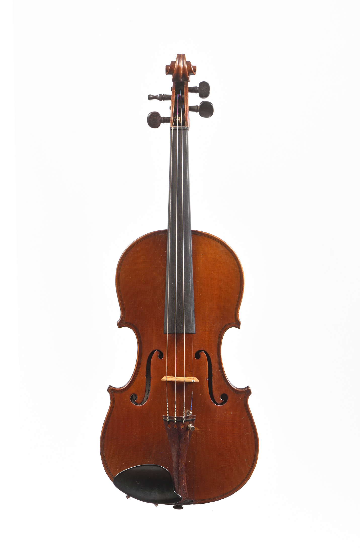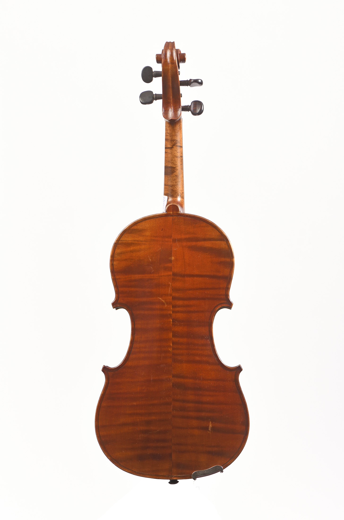 portant une étiquette de réparation. Fait à Mirecourt au début XXe. Fond de deux pièces aux ondes larges. Bon état de restauration. (Par Alain Besson en 98). 359 mm.