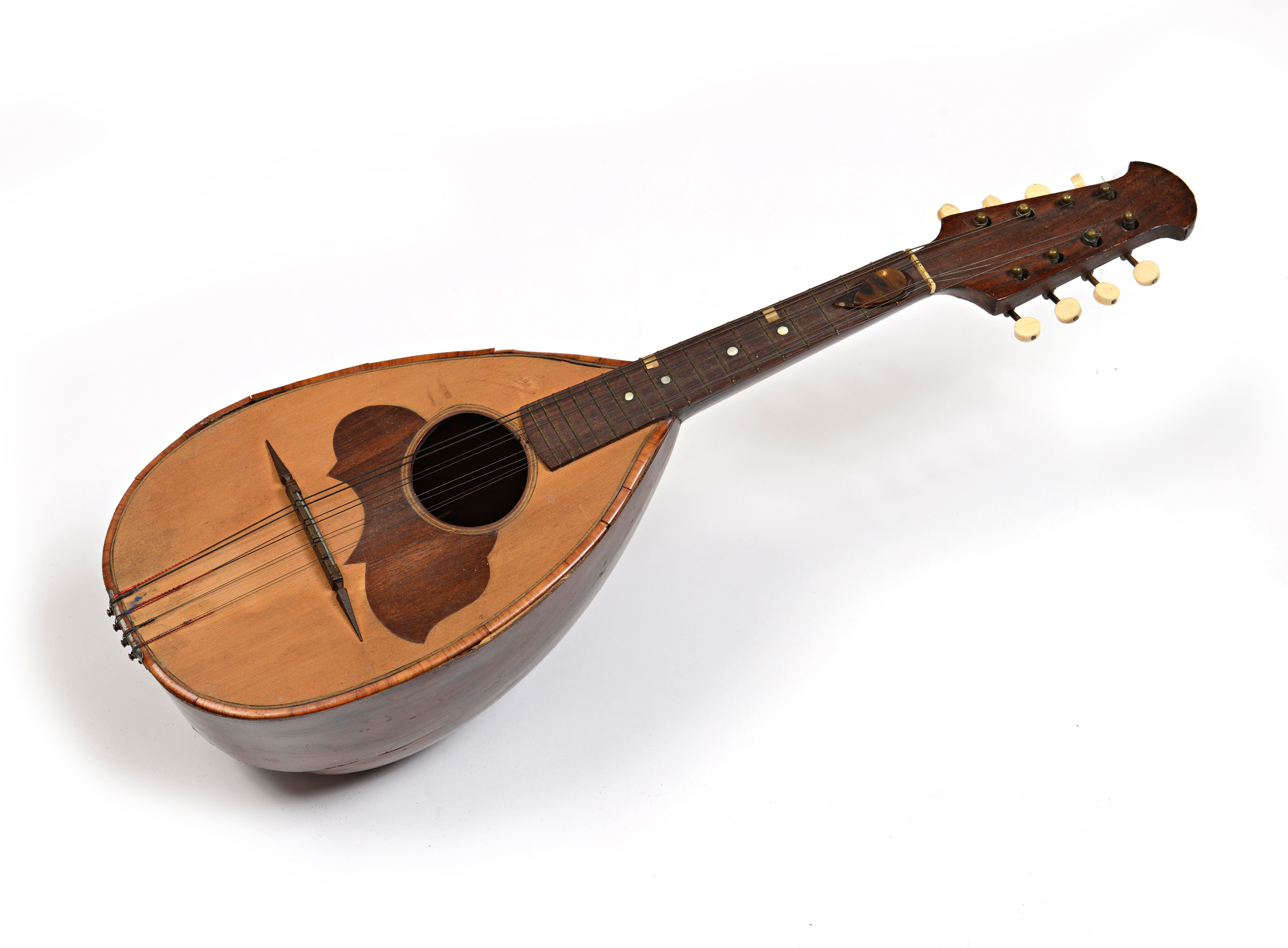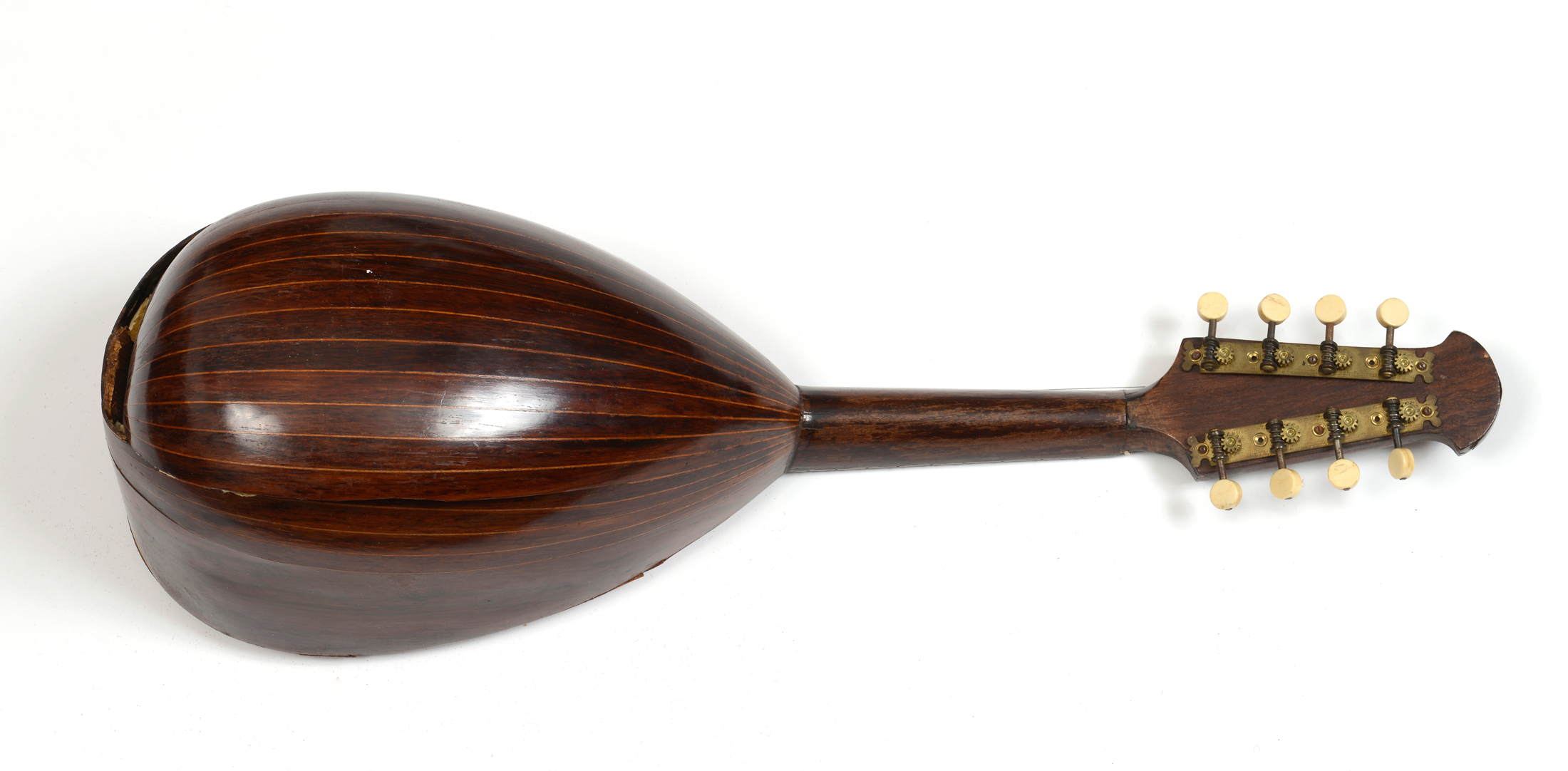 On y joint une mandoline Fond bombé. Fond accidenté. L'ensemble est à restaurer.