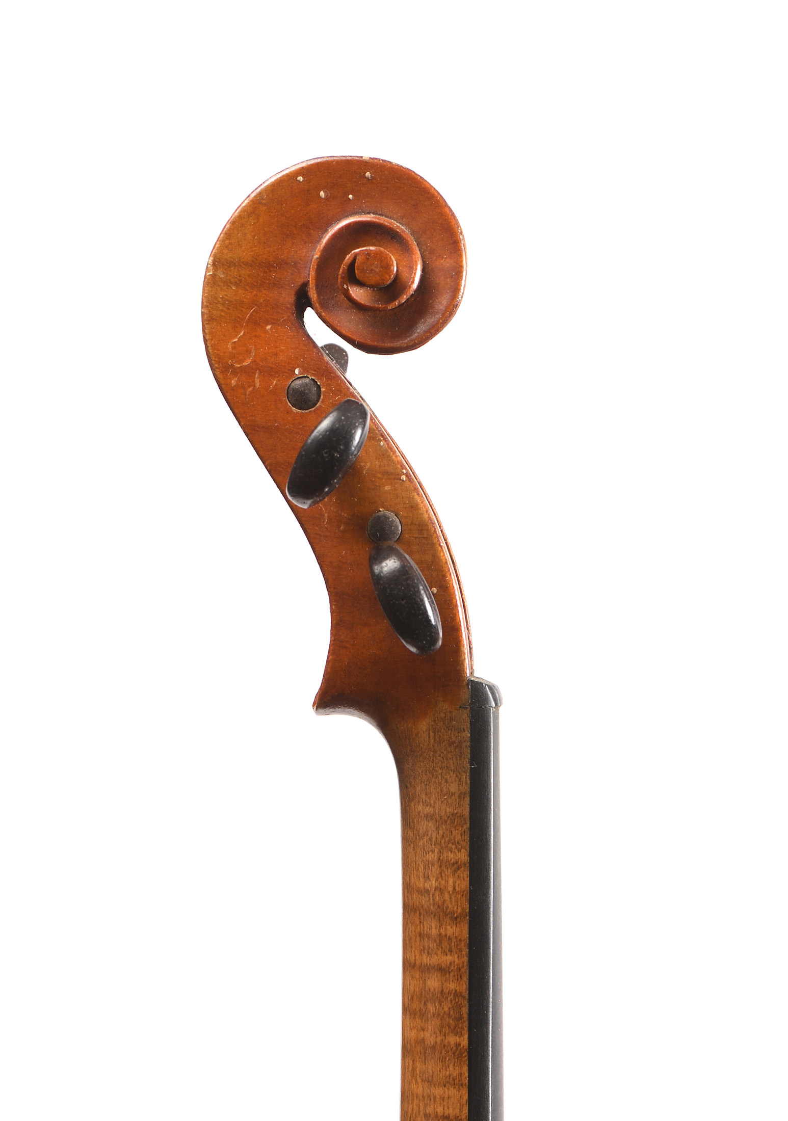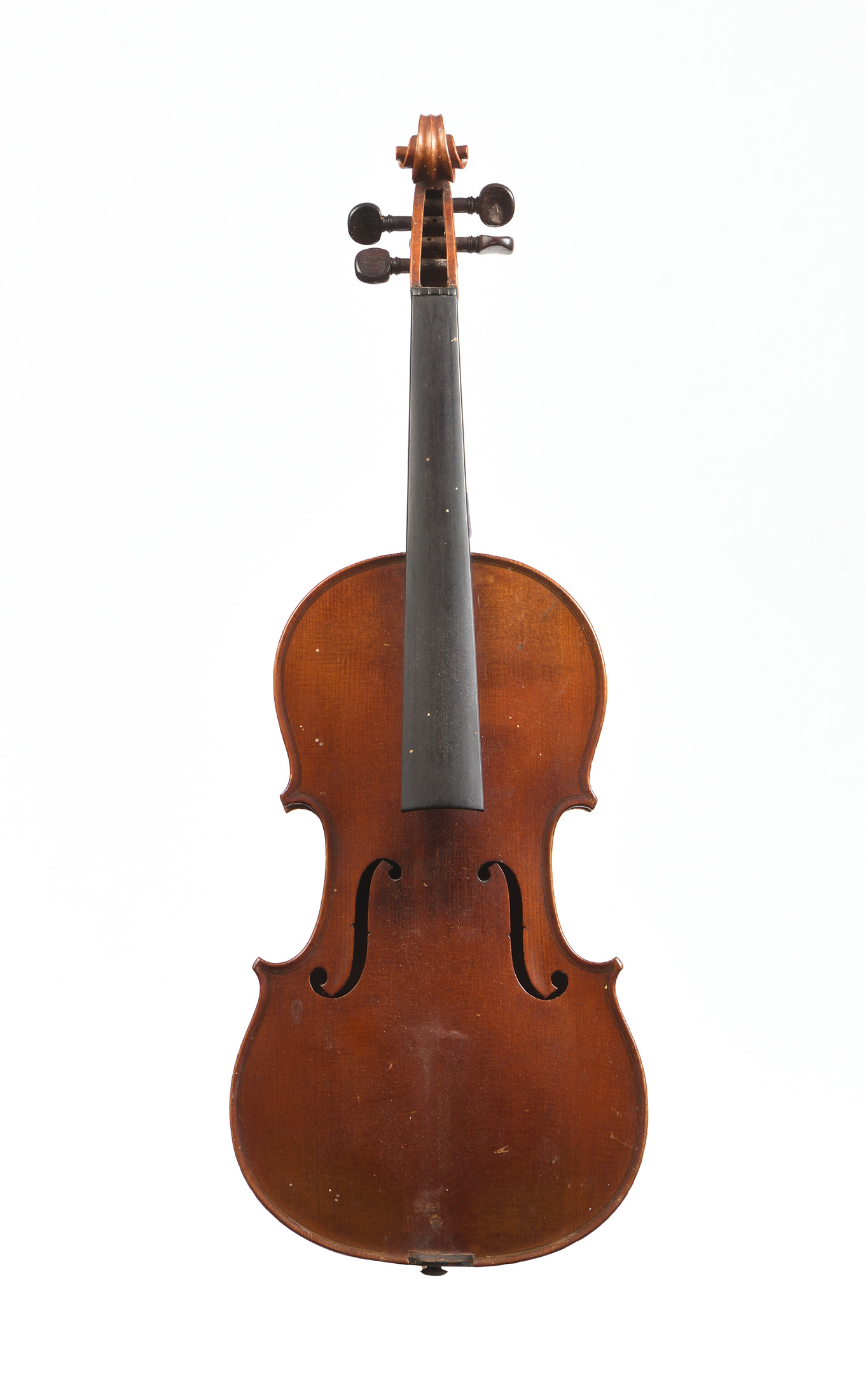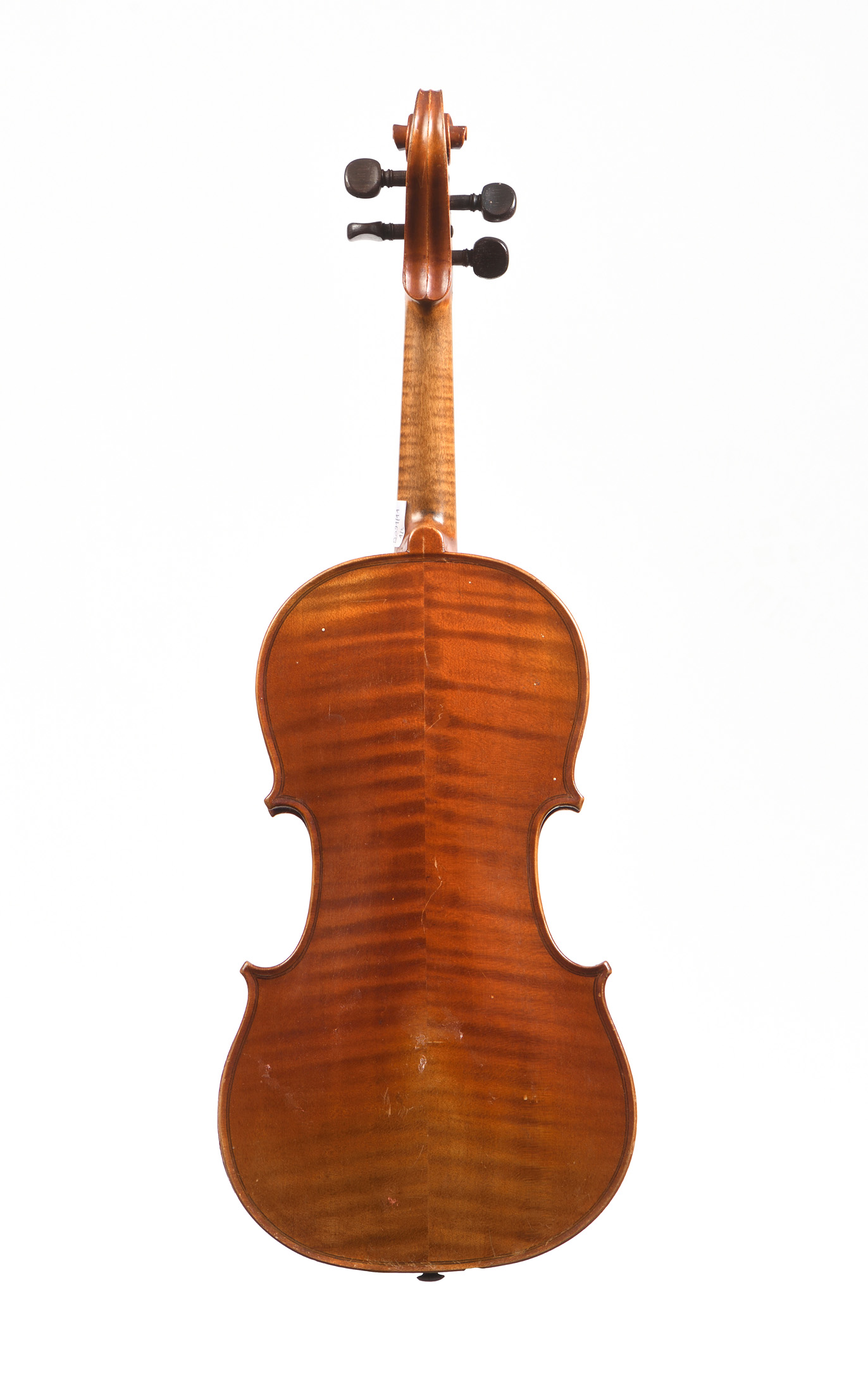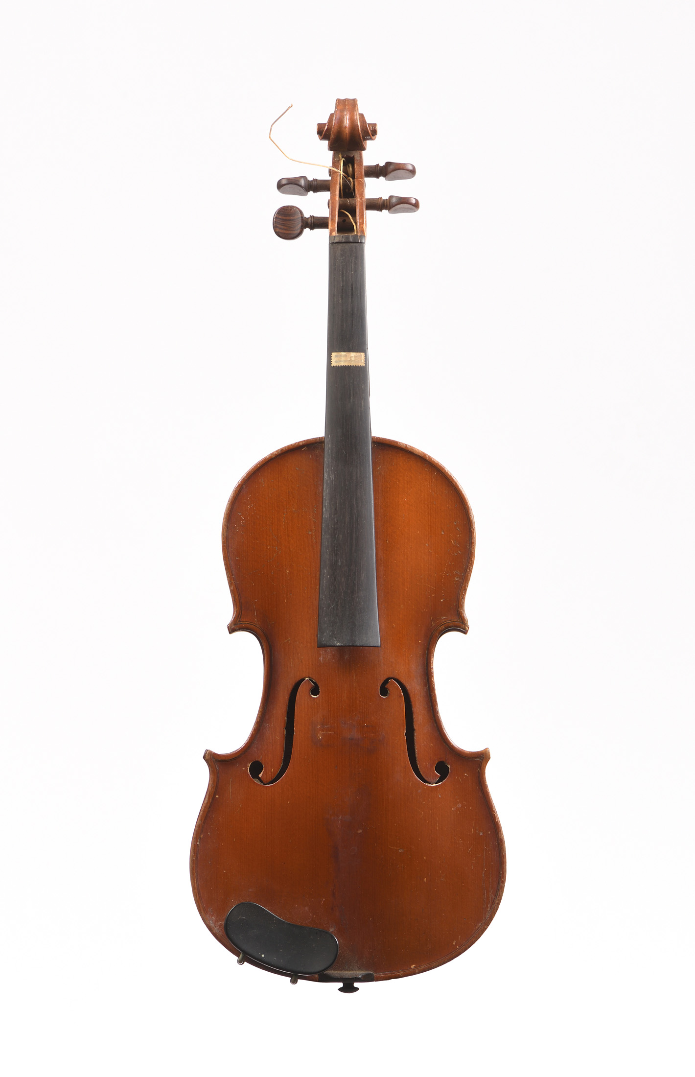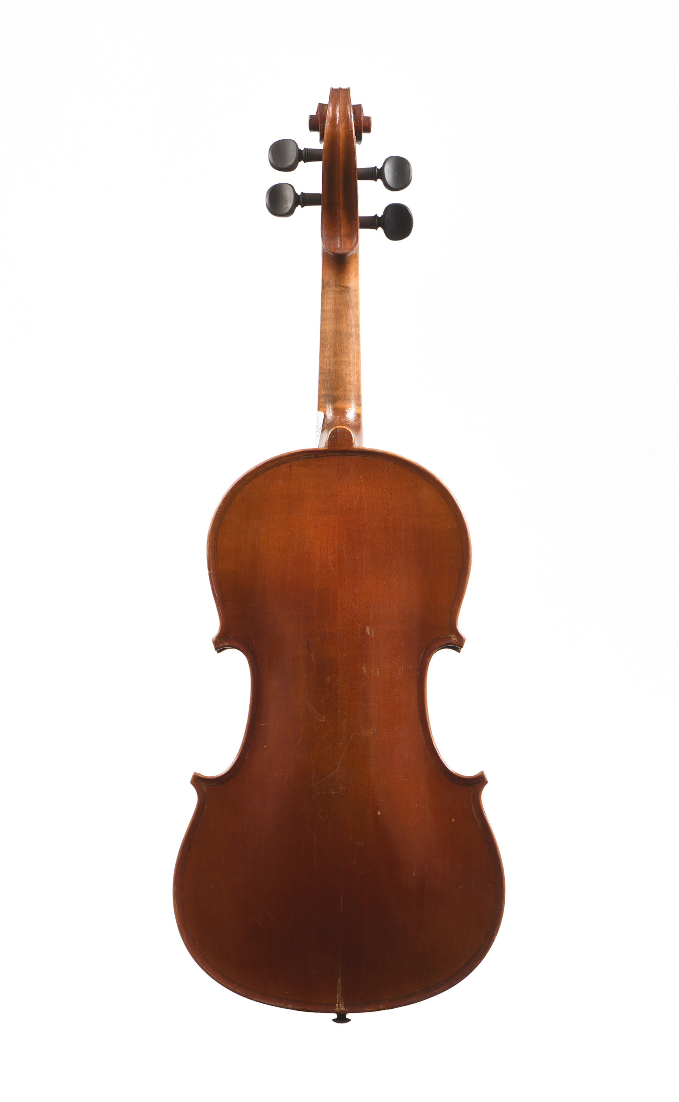 - Un violon 3/4 portant une étiquette "Antonius Stradivarius... 1717" Fond de deux pièces. Vernis brun orangé sur fond doré.