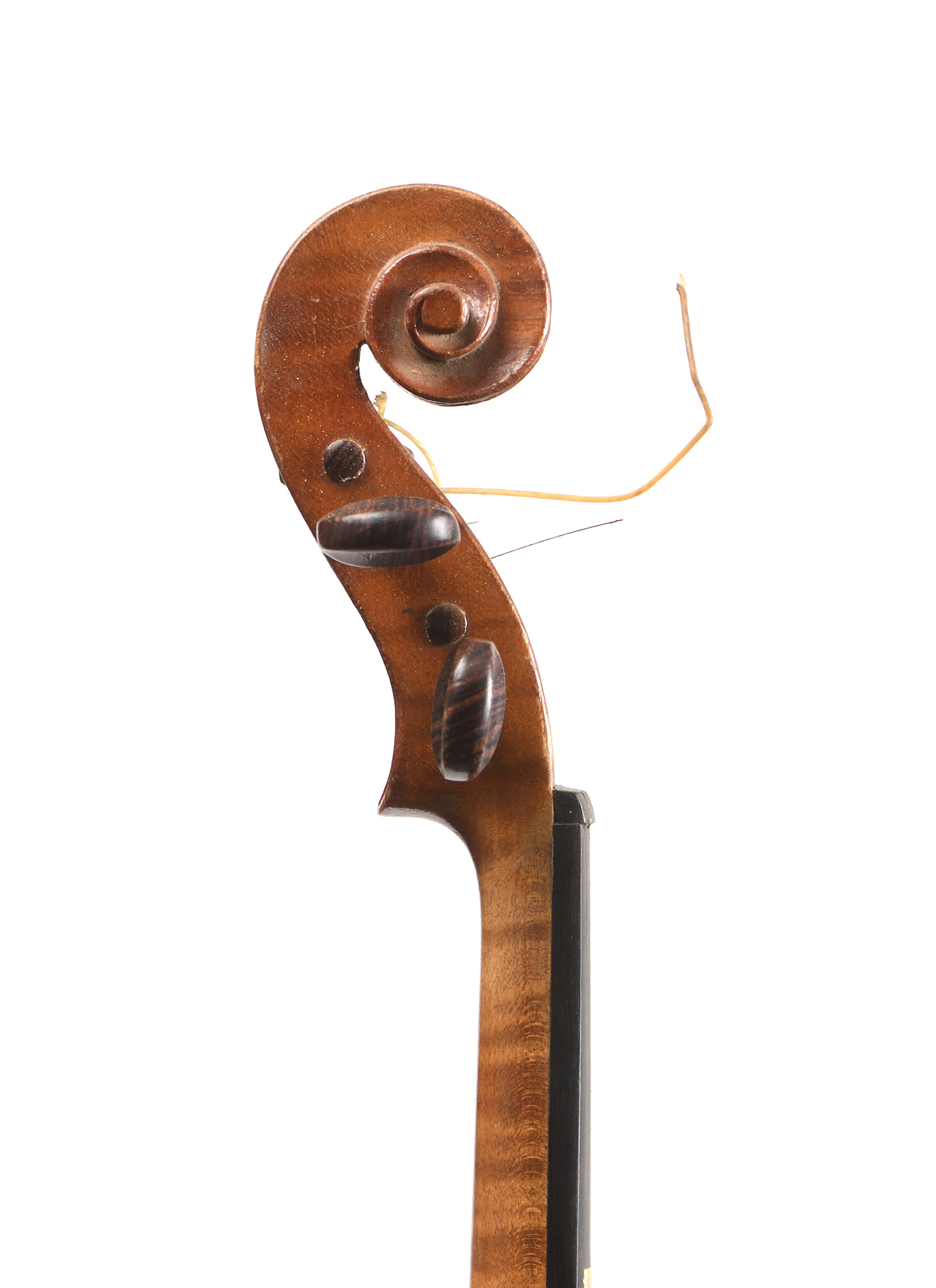 - Un violon 3/4 sans étiquette, non fileté. Décollages. En l'état.