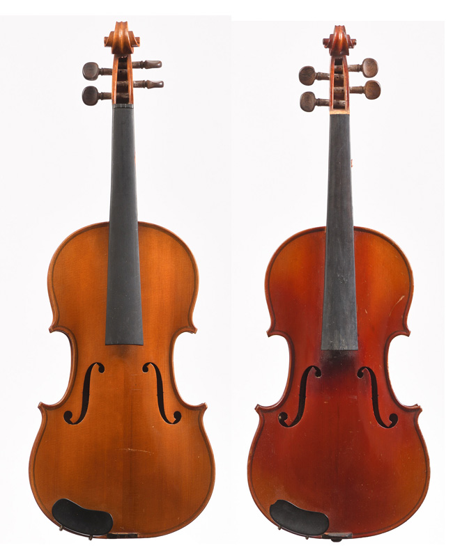 2 French violin made in Mircourt. Labelled "Copie de Stradivarius..1721"