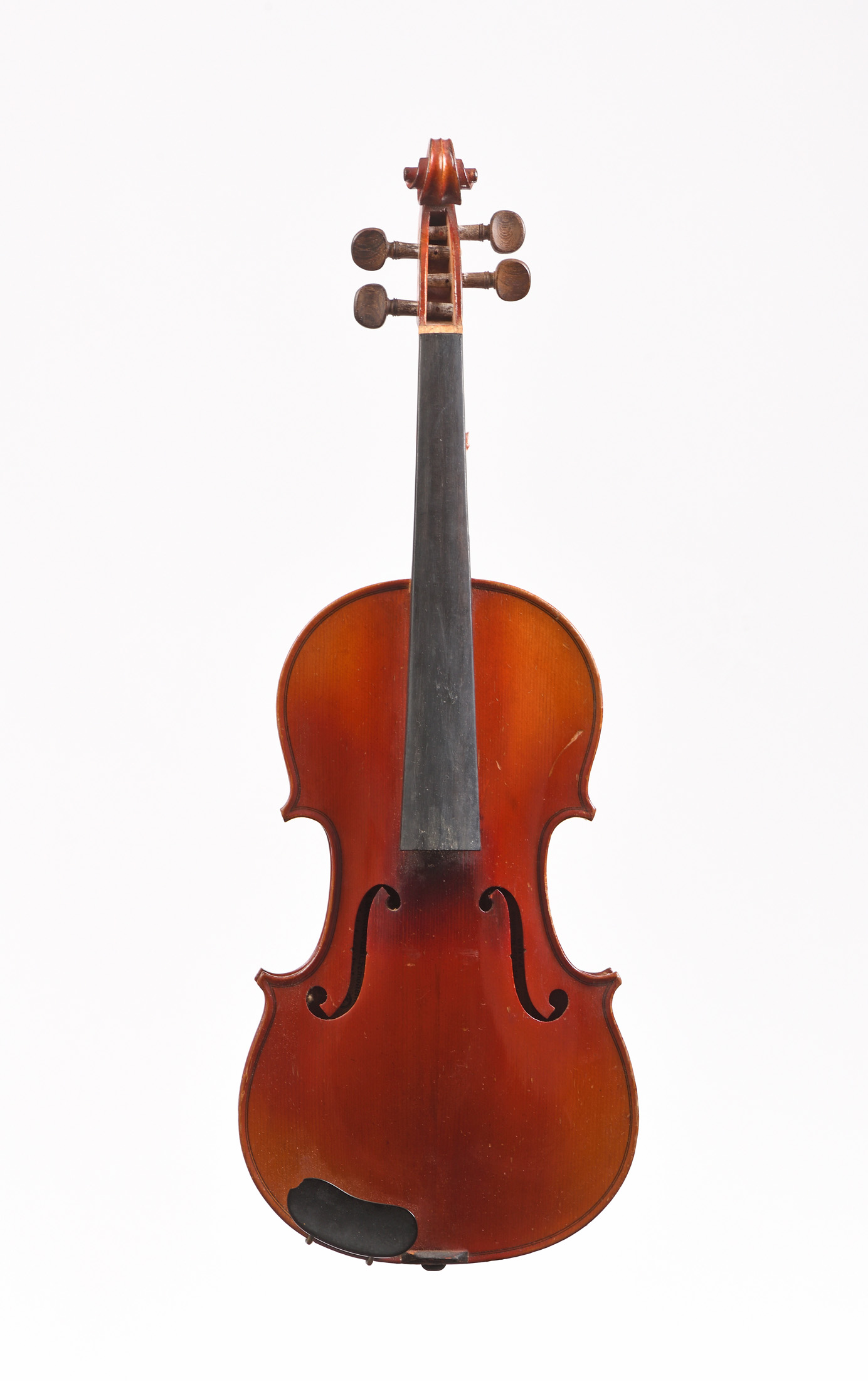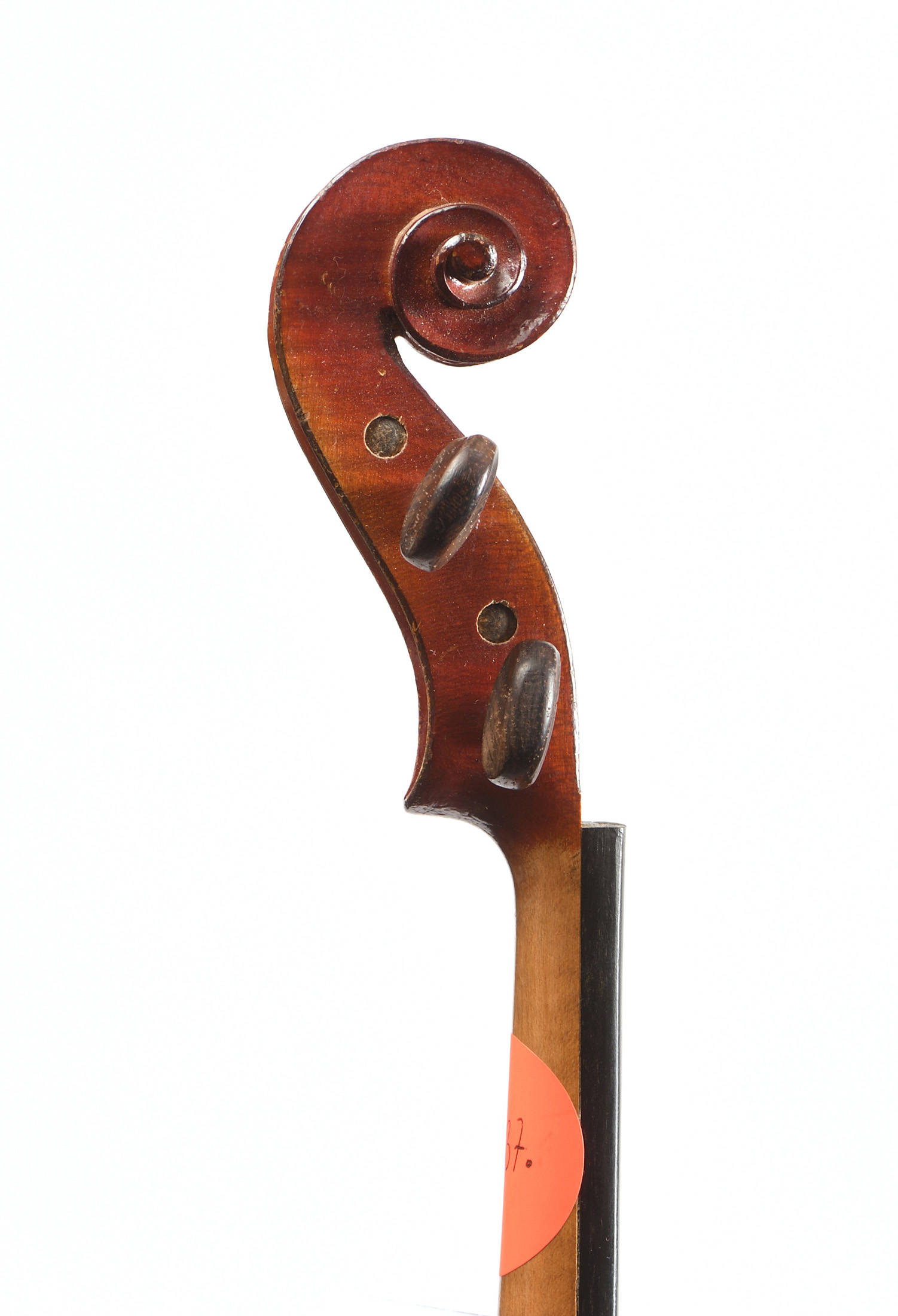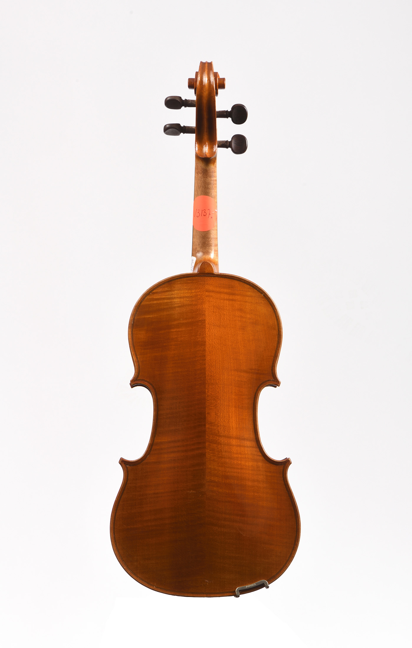 Un violon Français "IV Copie de Stradivarius..1721". Fond de deux pièces. Vernis brun rouge sur fond doré. 358 mm.