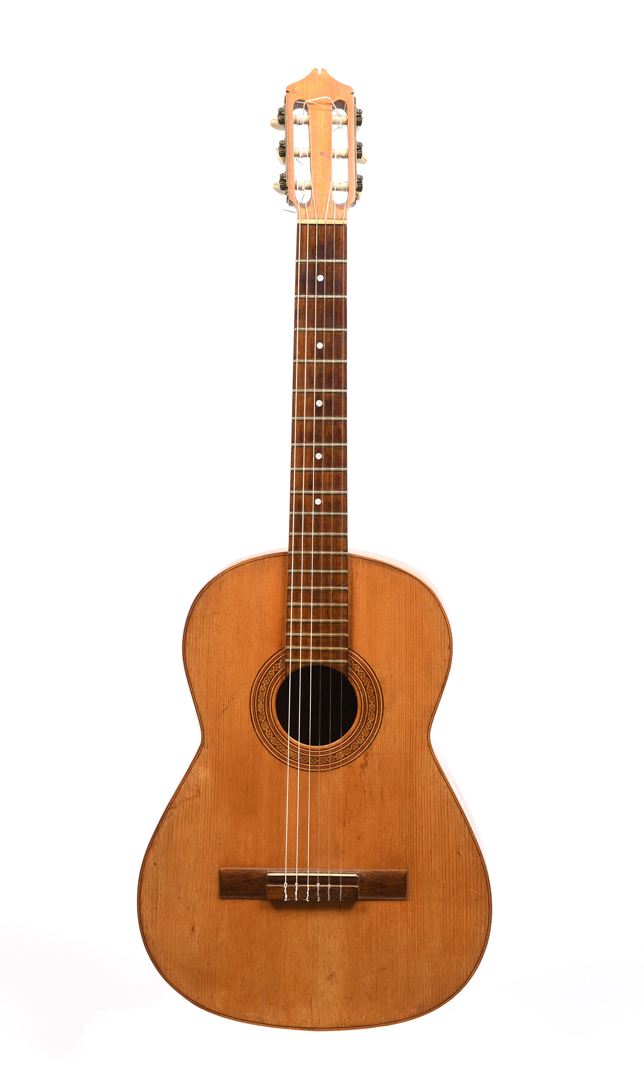 Guitare Espagnole, dont elle porte l'étique Fond de deux pièces en citronnier, Eclisses du même bois. Table en épicéa. Circa 1950.