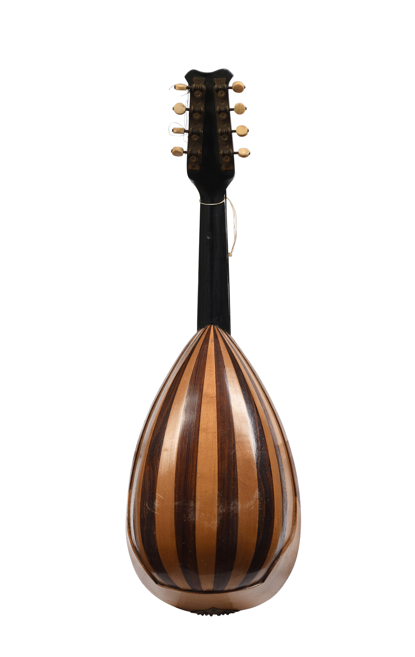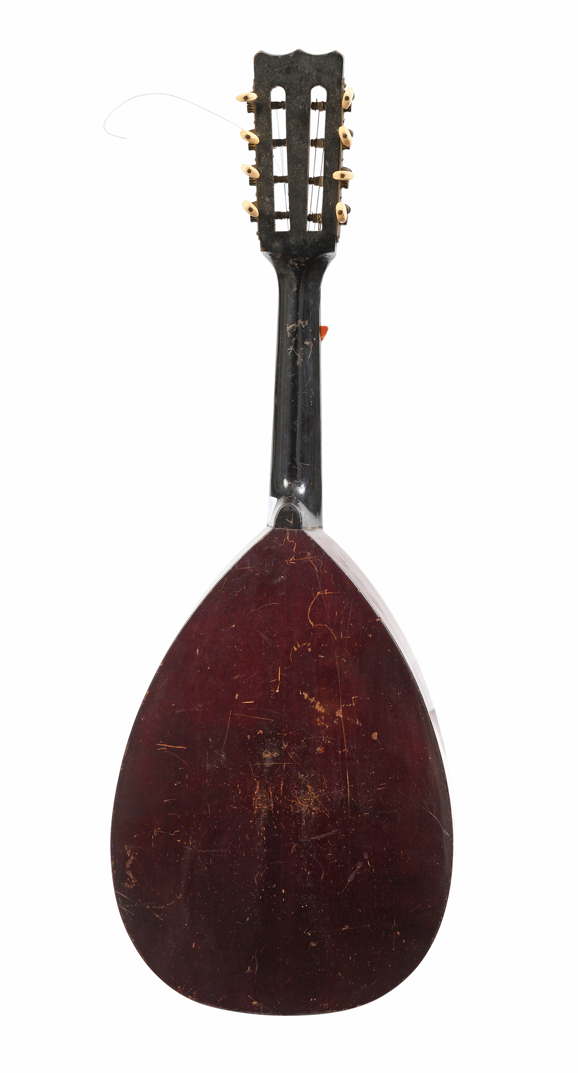 Mandoline à fond plat portant une étiquette Jerome Thibouville Lamy, Mandoline à fond bombé portant une étiquette "Fabricazione Di Mandoli Napoletani Bocciarelli".