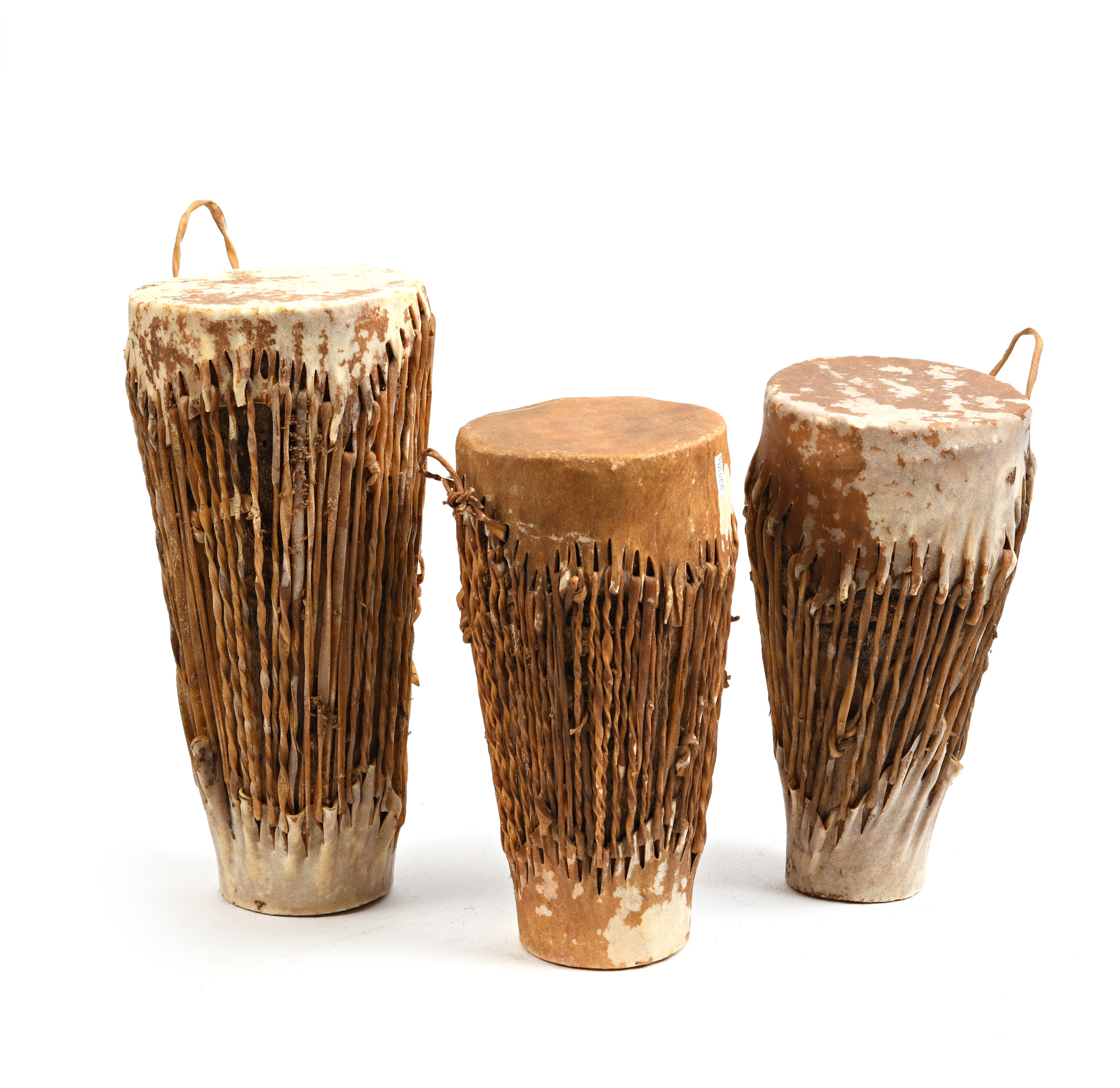 Lot de trois tambours Africain. Ntenga probablement du CONGO. Forme Conique. H 30 cm H 25 cm H 25 cm;