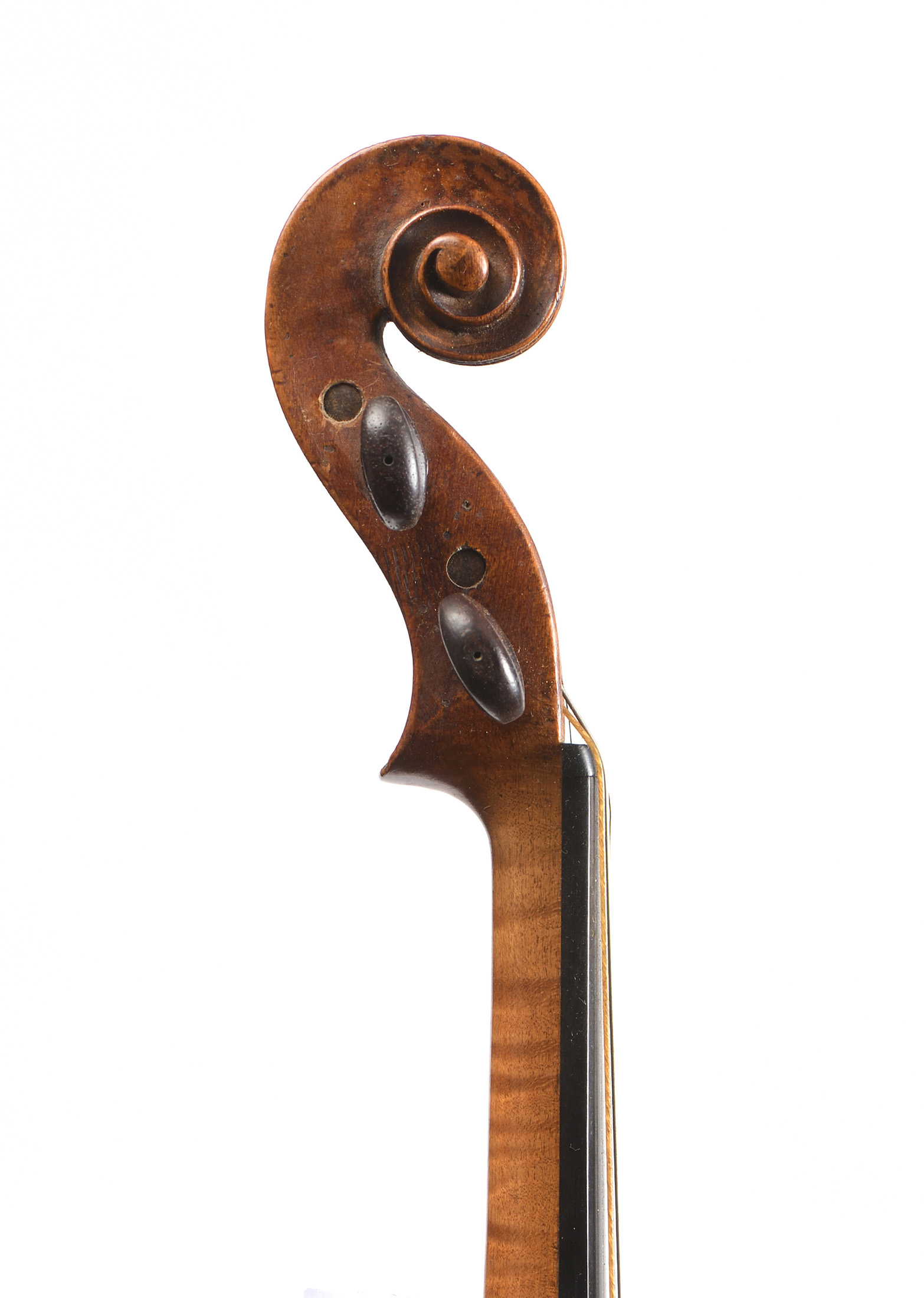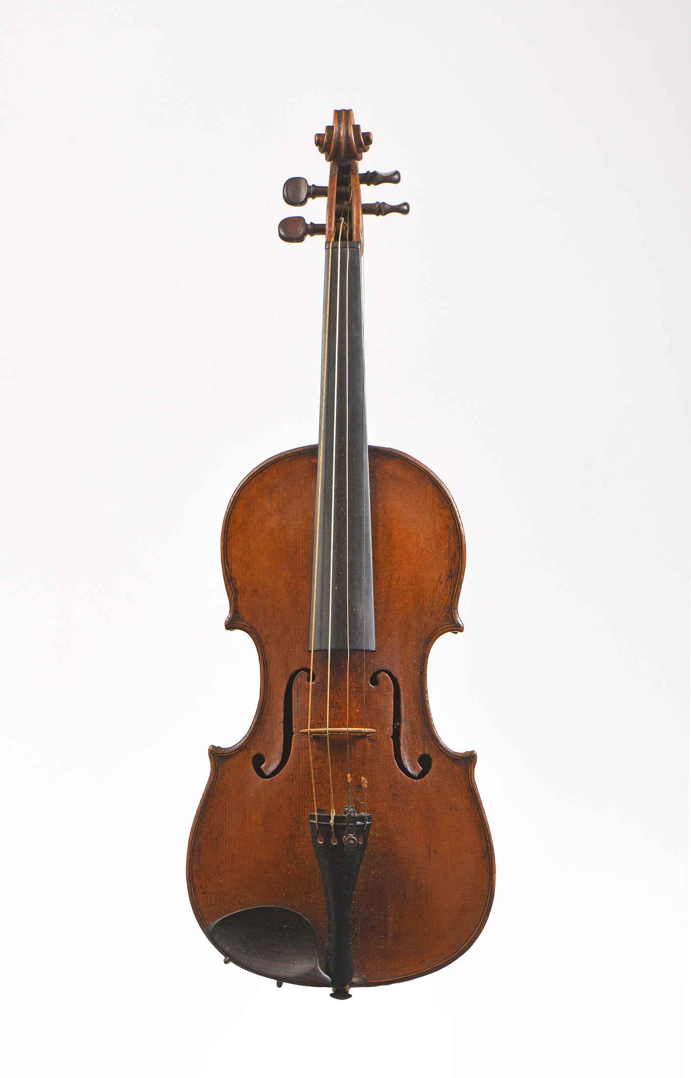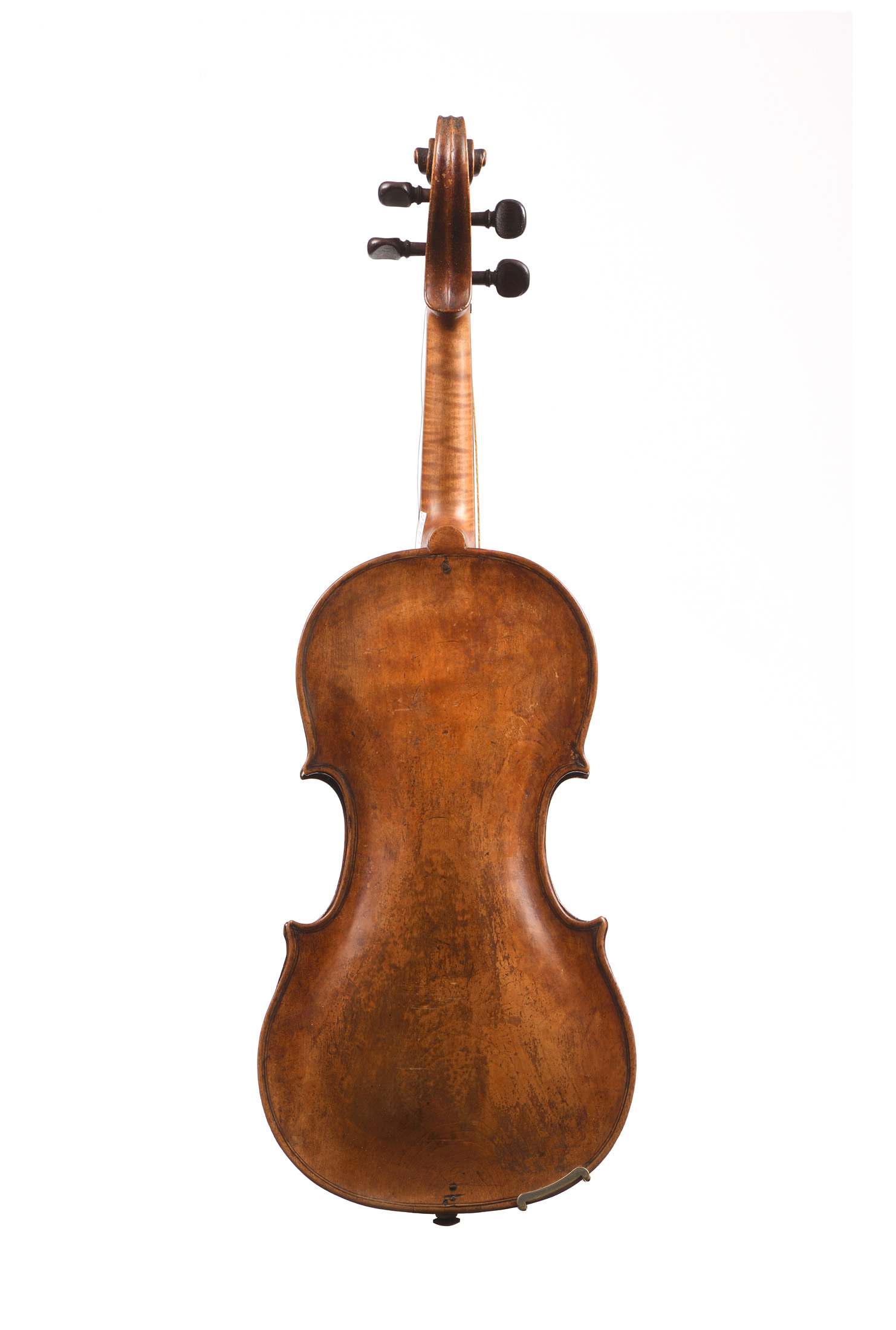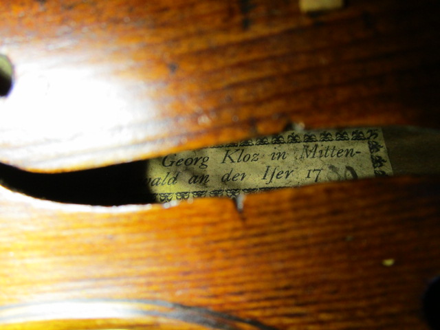 dont il porte une étiquette " Georg Kloz in Mittenwald... 1780", fait à Mittenwald au XIXe. Beau fond d'une pièce en érable. Vernis brun sur fond doré. 355 mm.