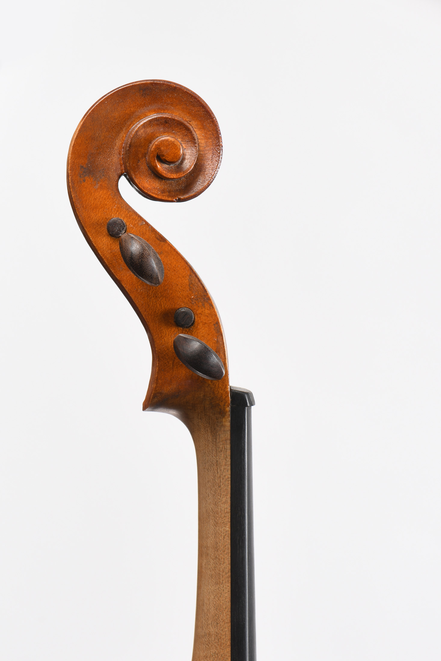 probablement Italien (Crémone) d'étude. Intéressant alto d'élève fait dans les années 1980. Sans étiquette. Fond de deux pièces. Vernis brun sur fond doré. Usures. Bon état général. 407 mm.