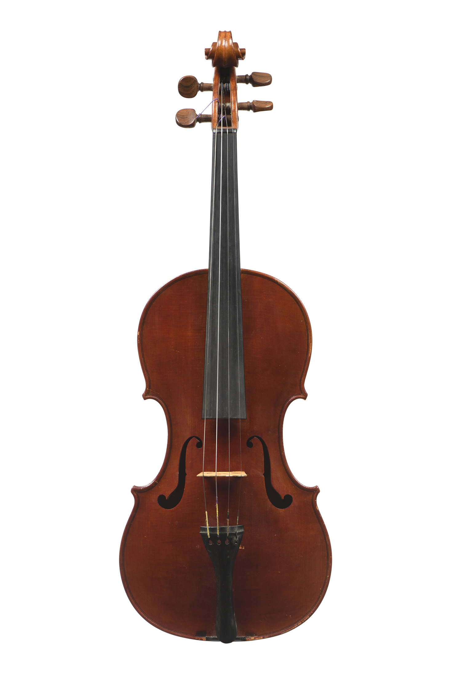 portant l'étiquette "ROUSSEL 64 1". Fait vers 1950. Fond de deux pièces en érable. Table en épicéa aux pores fins s'élargissant sur les bords. Vernis orangé brun. 353 mm.