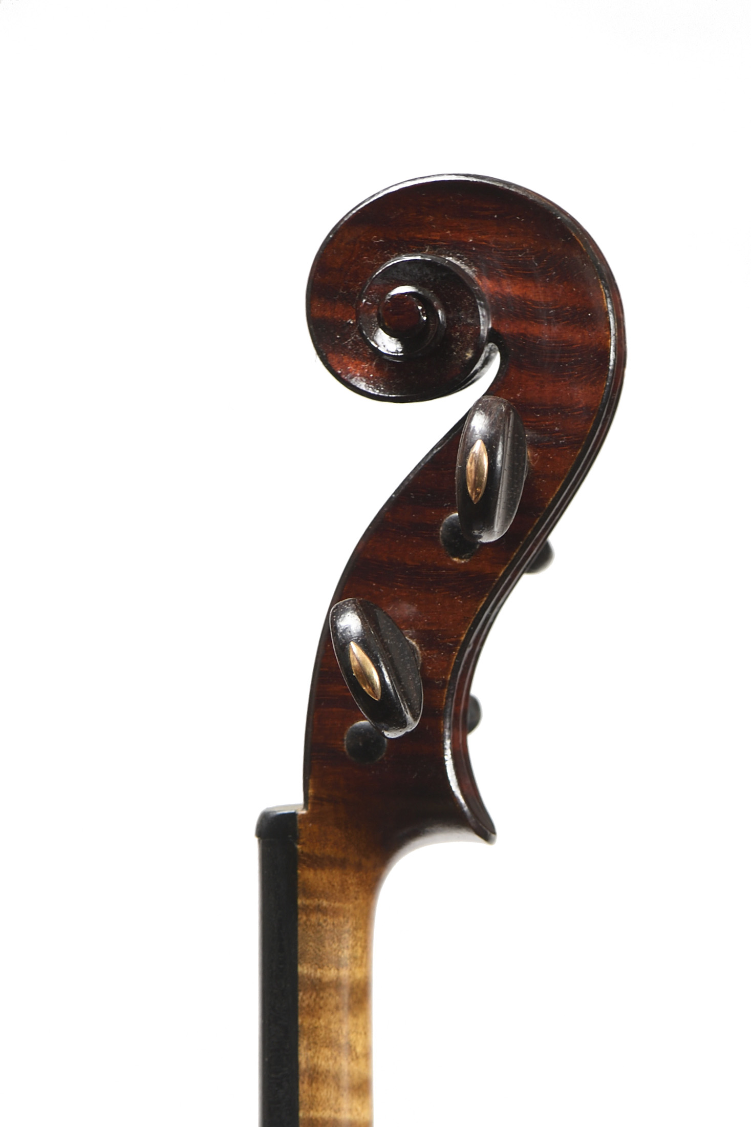 portant l'étiquette originale "Marius Didier. Luthier Mattaincourt. N° 153. 1934." avec ses marques au fer. Barre d'harmonie signée. Fond d'une pièce en bel érable. Table en épicéa. Vernis brun rouge. 356 mm. Avec boite, deux archets, et certificat d'authenticité.