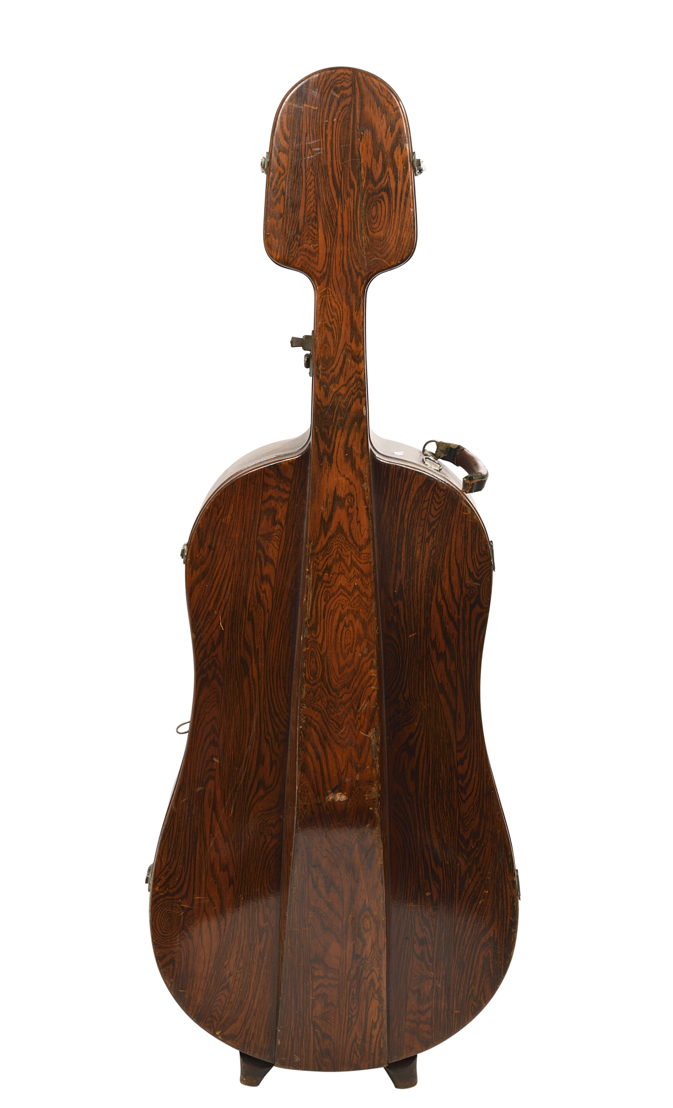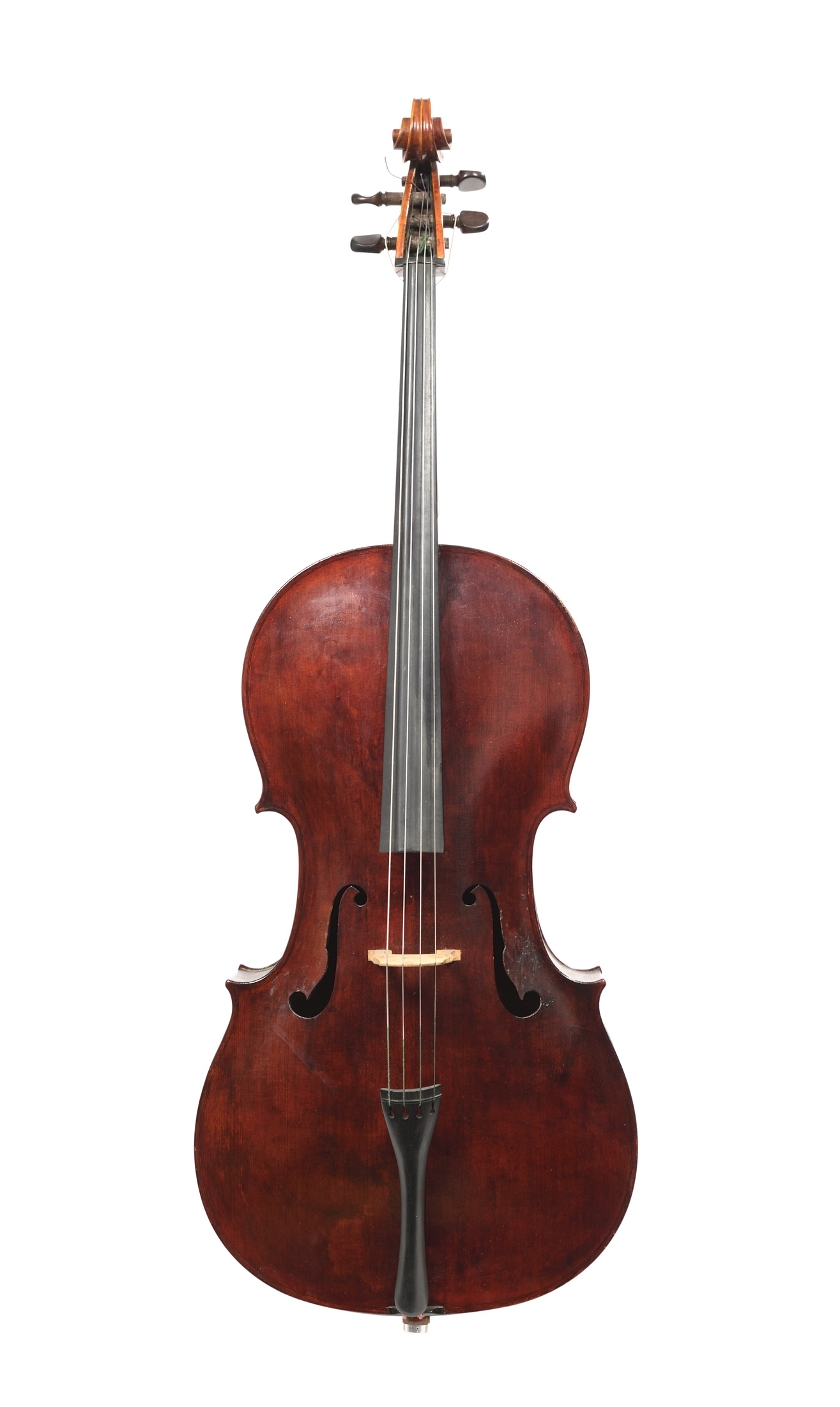 Fond de deux pièce en érable aux ondes fines, régulières et horizontales. Table en épicéa. Vernis rouge sur fond doré. 760 mm.