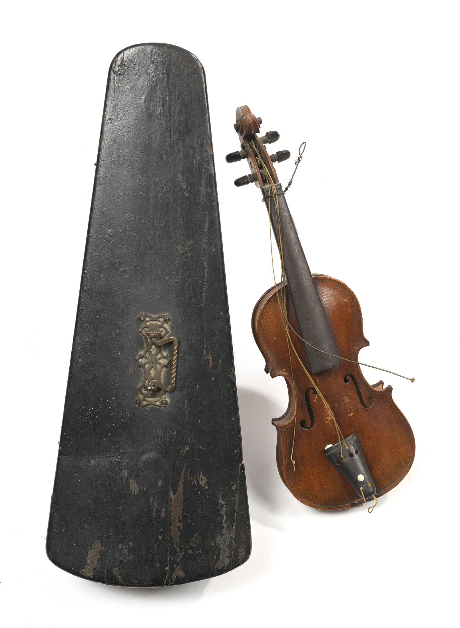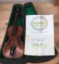 Belle miniature de violon. Fond d'une pièce en érable, table en épicéa. Avec boite. Manque une éclisse. 32 cm.