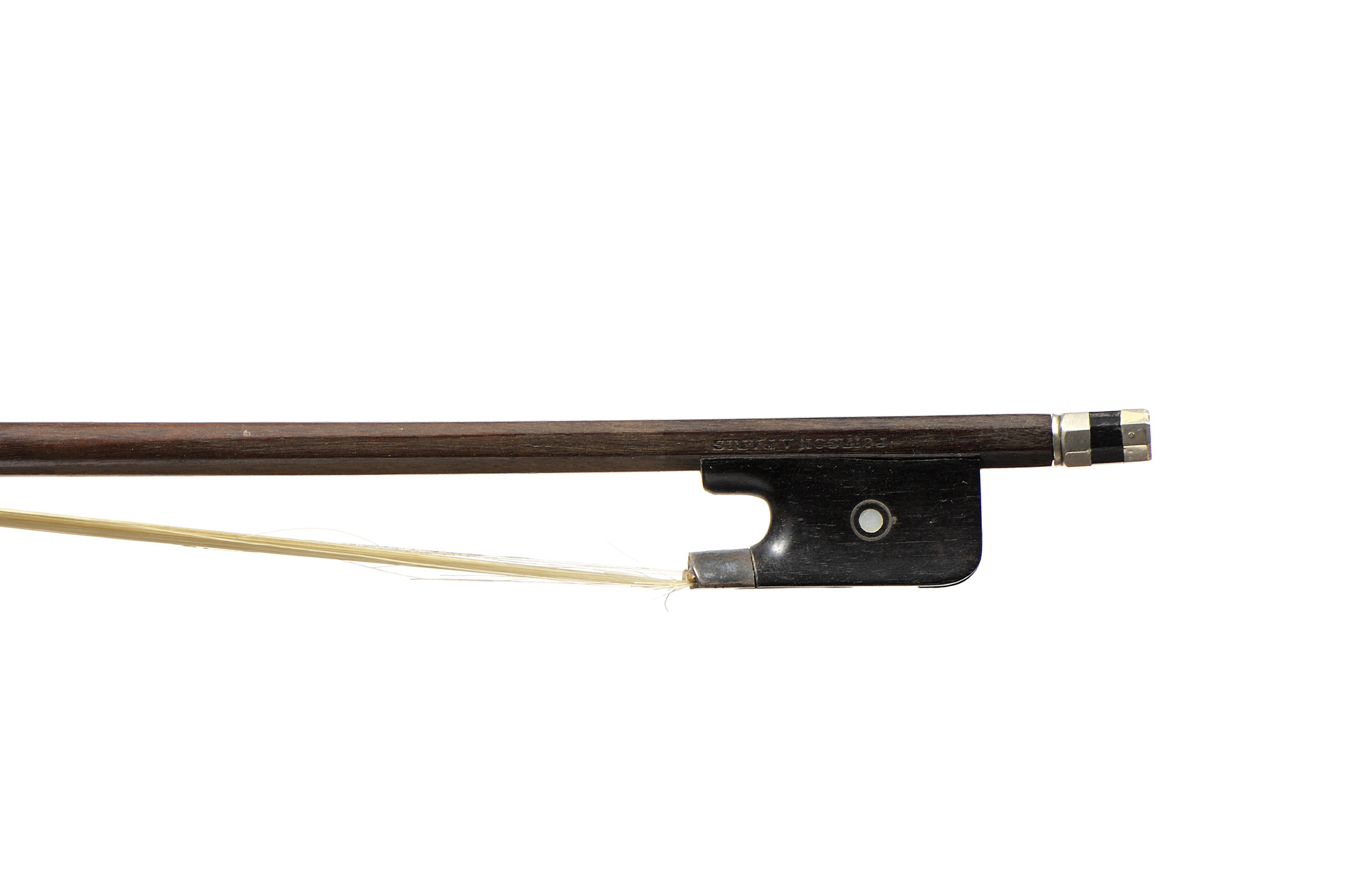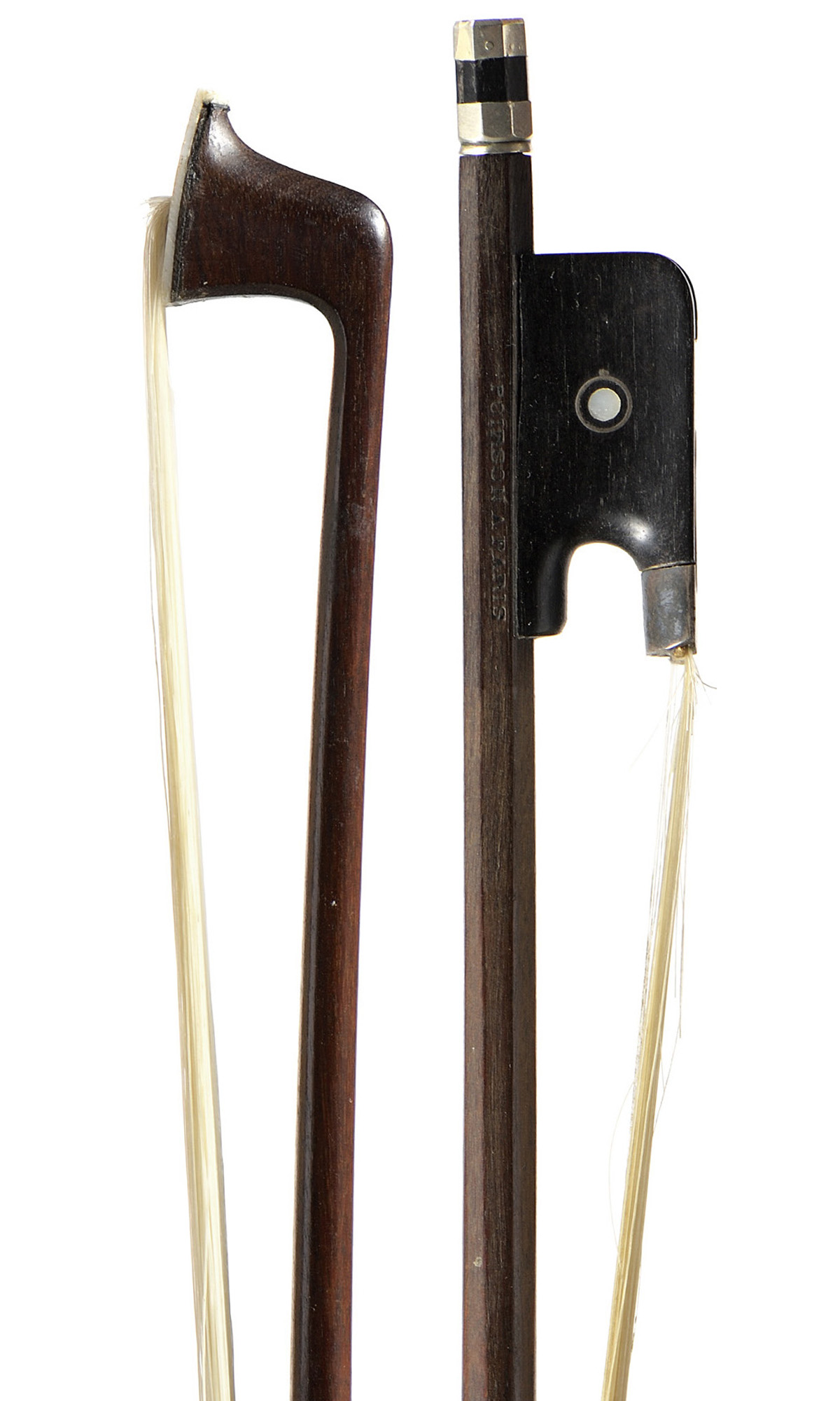 portant la marque au fer POIRSON A PARIS. Baguette en beau bois de pernambouc. Hausse ébène, monté argent. Bouton d'un autre auteur en maillechort. 729 mm. 59g sans garniture.