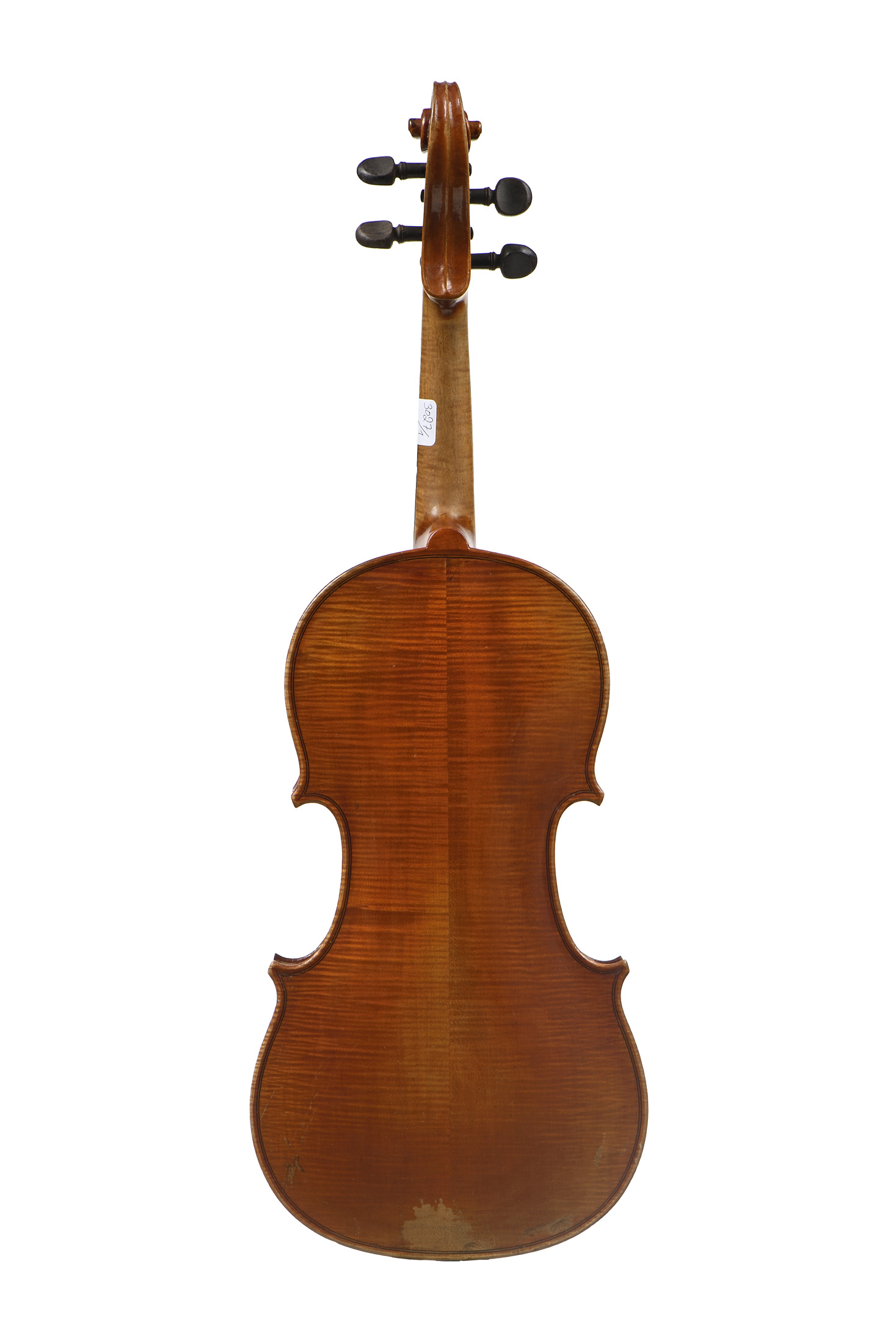 portant une étiquette apocryphe "Rossi". Fond de deux pièces en érable. Vernis brun orangé. Cassure de table. Restauration au talon du manche. Avec boite.