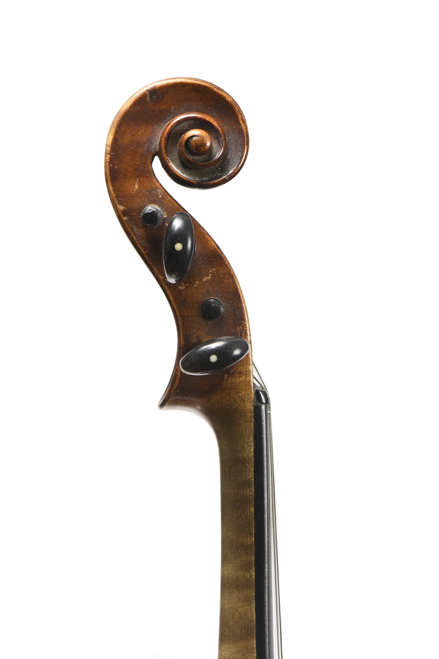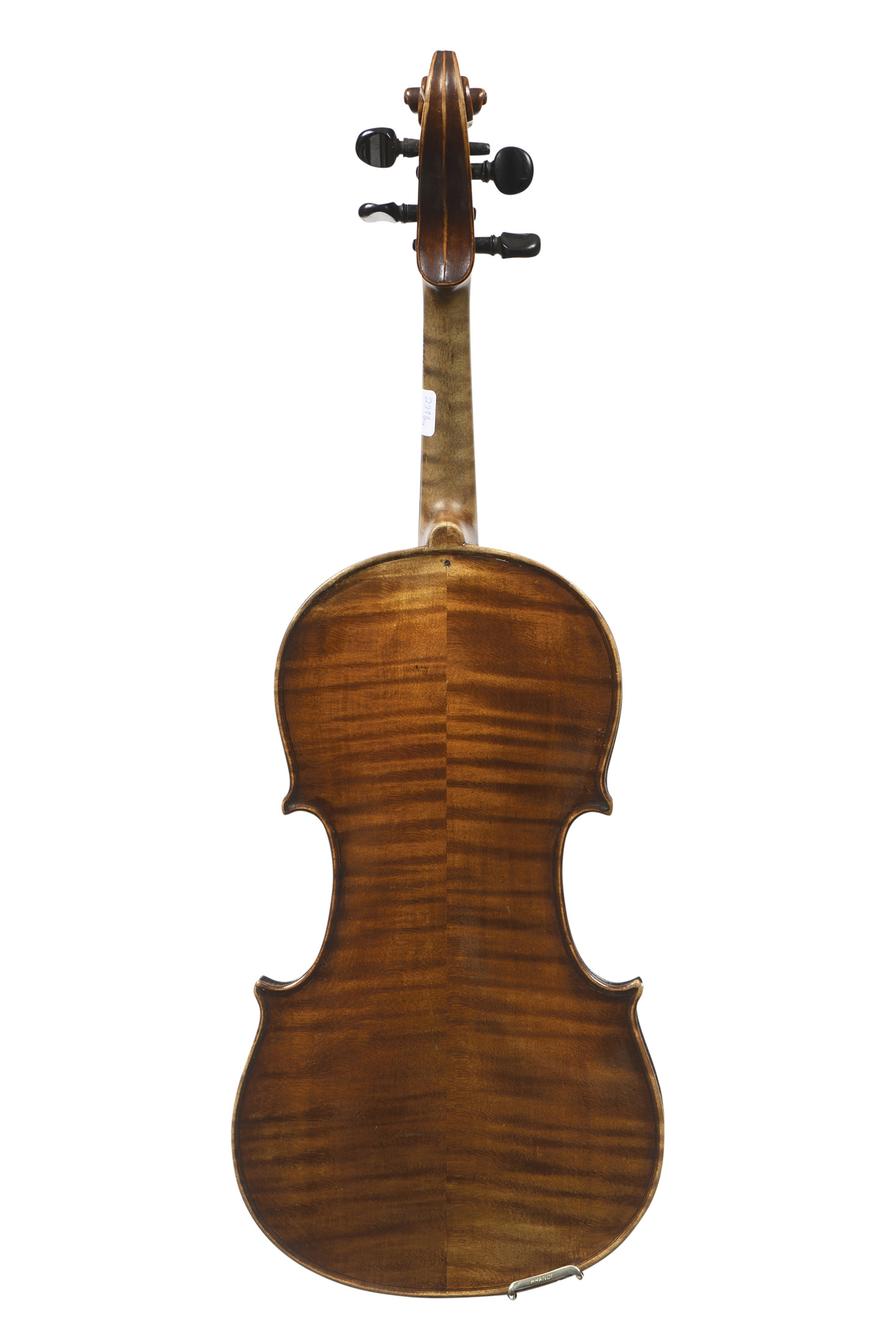 dont il porte l'étiquette abimée "L.PIERRARD 18 Luthier 89..." daté de 1889. Fond de deux pièce en bel érable aux ondes horizontales. Table en épicéa. Vernis brun doré. 360 mm. Avec boite et archet.