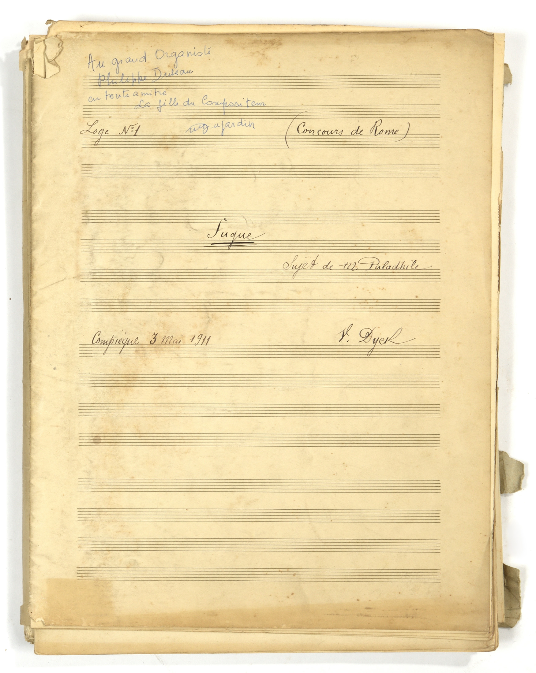 - Fugue. Sujet de M. Paladilhe. Compiègne le 3 mai 1911. Signé. 6 pages. Papier à 16 lignes.