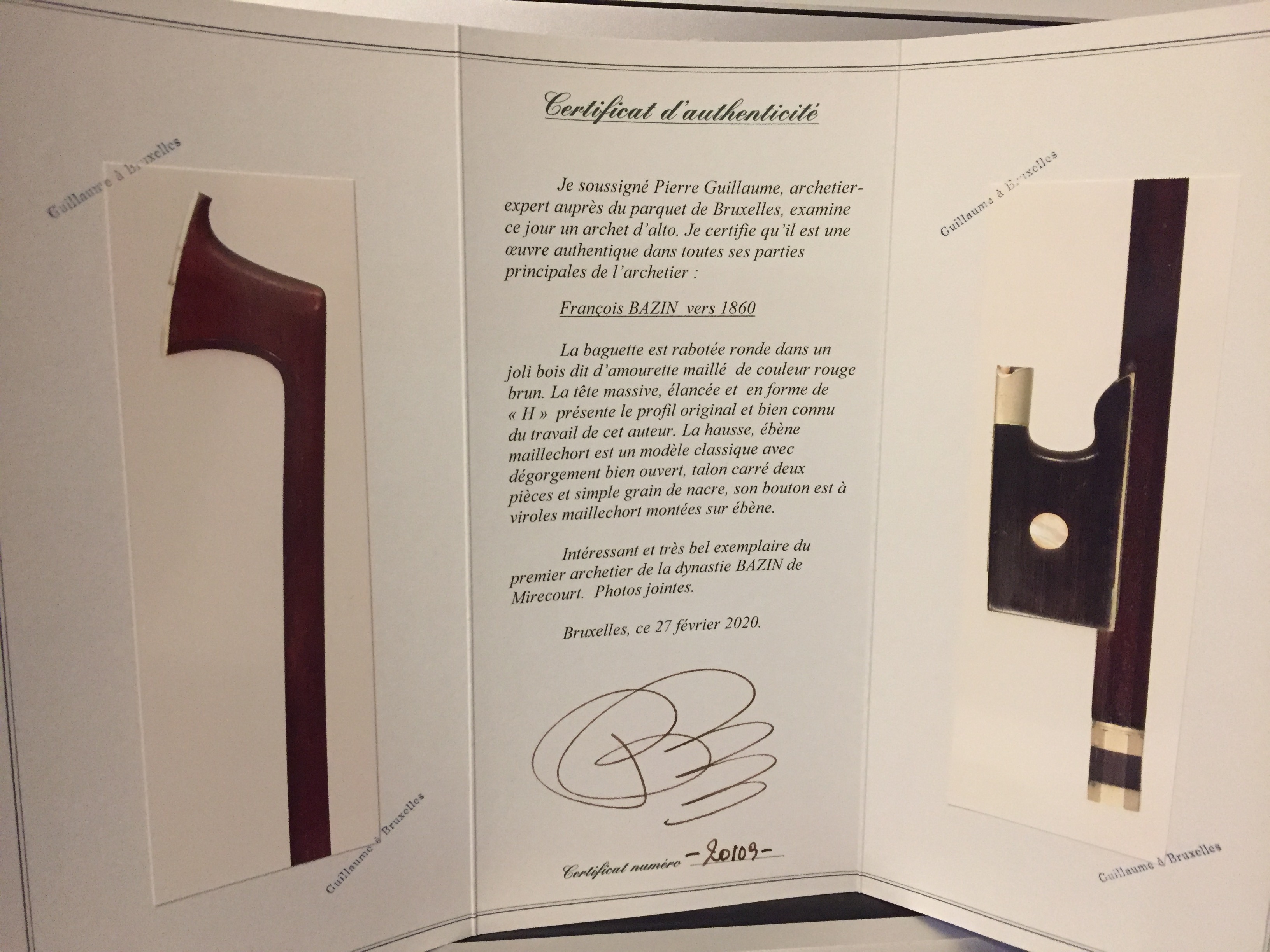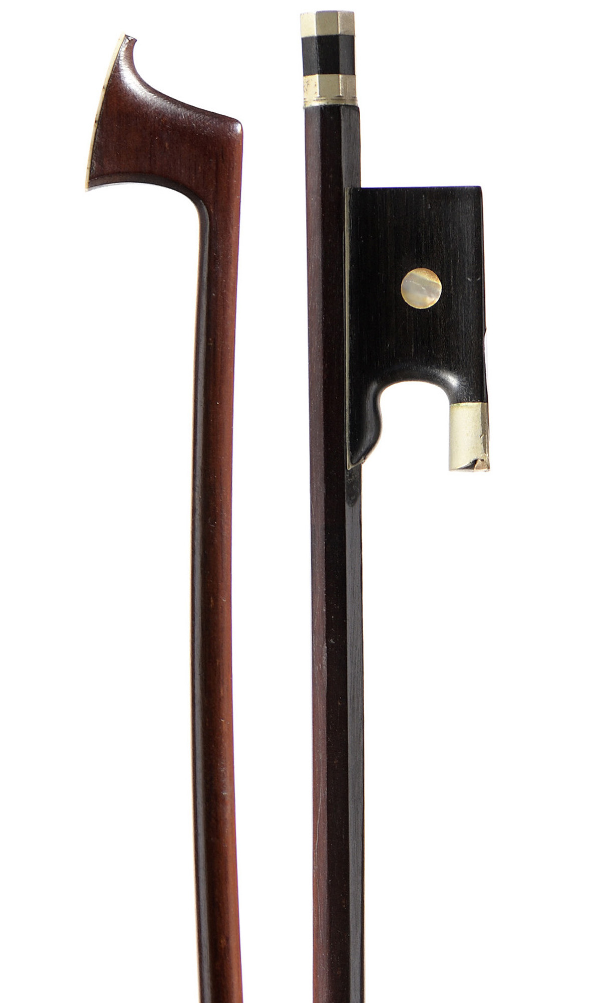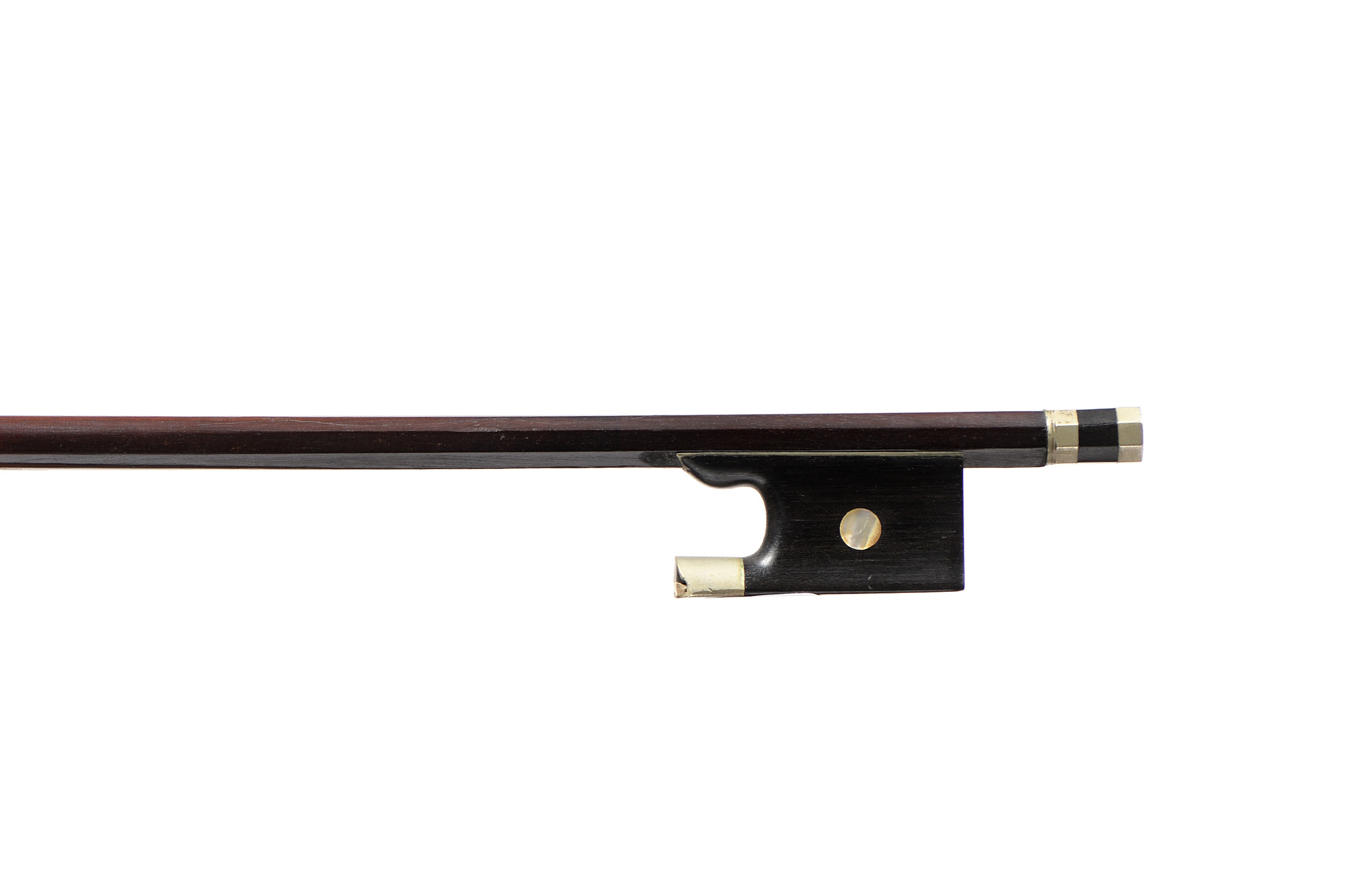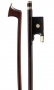 Baguette ronde en bois de pernambouc. Hausse ébène, monté maillechort. 720 mm. 57 g sans garniture, sans mèche.