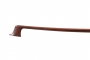 Belle baguette ronde en bois de pernambouc brun, rouge. Hausse en ébène. Monté argent. Manque le talon. Accident au pan. 52 g sans mèche, ni garniture. 728 mm. usure au pan.
