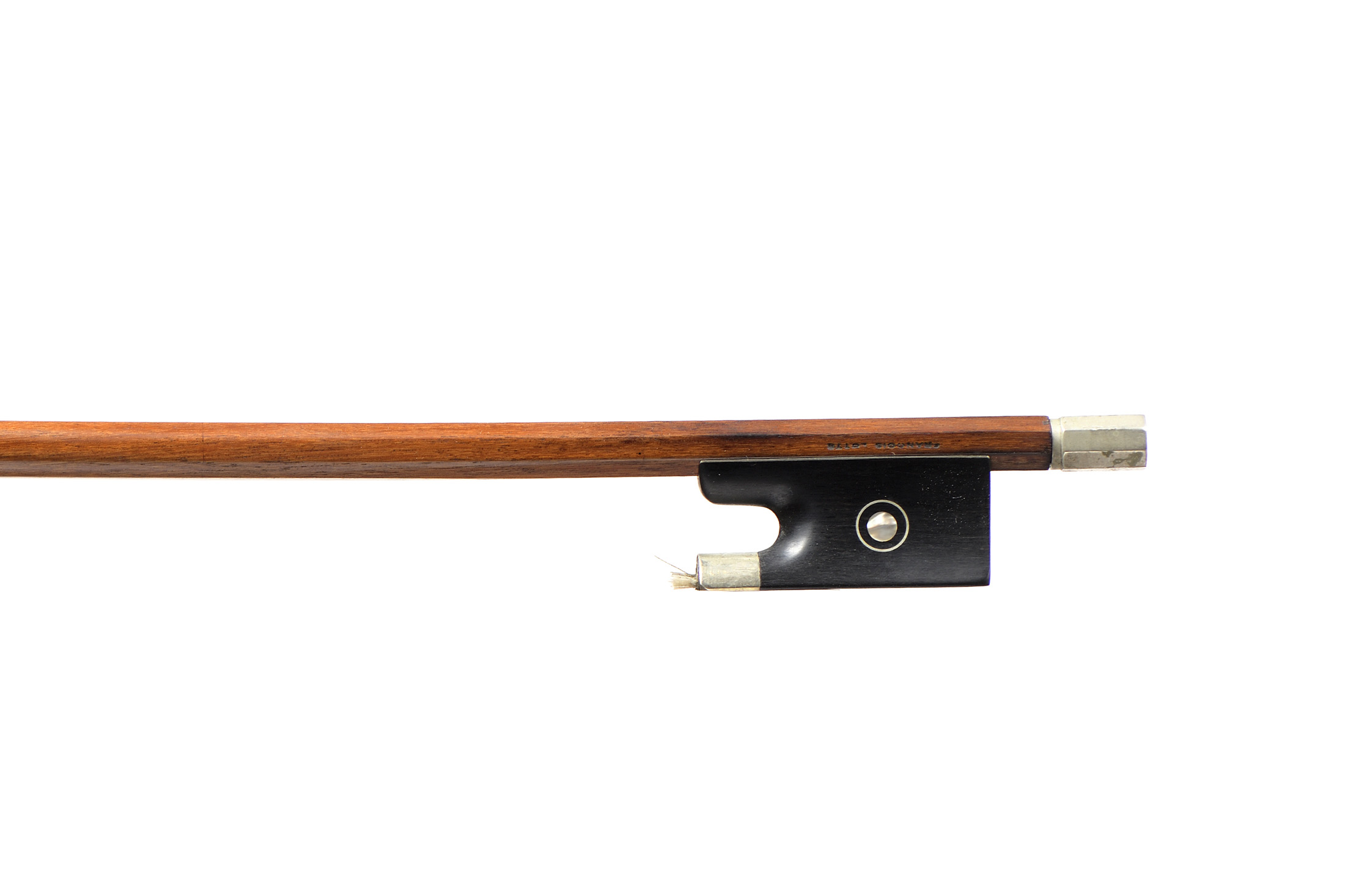 dont il porte la marque au fer "FRANCOIS LOTTE". Baguette ronde en bois de pernambouc. Hausse ébène, monté maillechort. 725 mm. 51 g sans mèche, ni garniture.