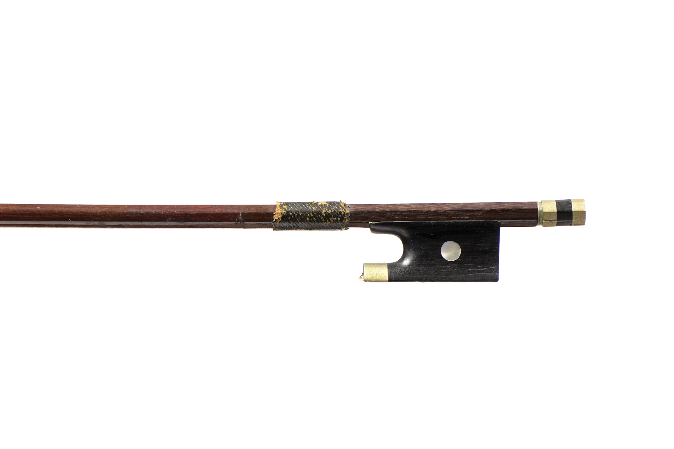 portant une marque au fer "PAUL JOMBAR.PARIS". Baguette ronde en bois de pernambouc. Hausse ébène, monté maillechort. 718 mm. 49 g sans mèche, ni garniture.