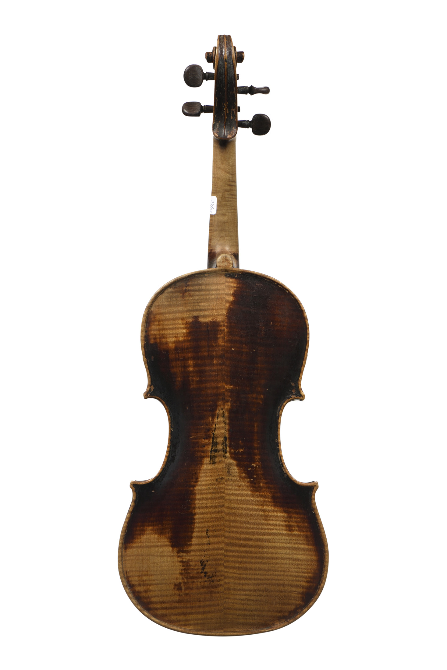 portant une étiquette "GEBR PLACHT... Wien". Fond de deux pièces en érable aux ondes régulières. 359 mm. Diverses cassures.