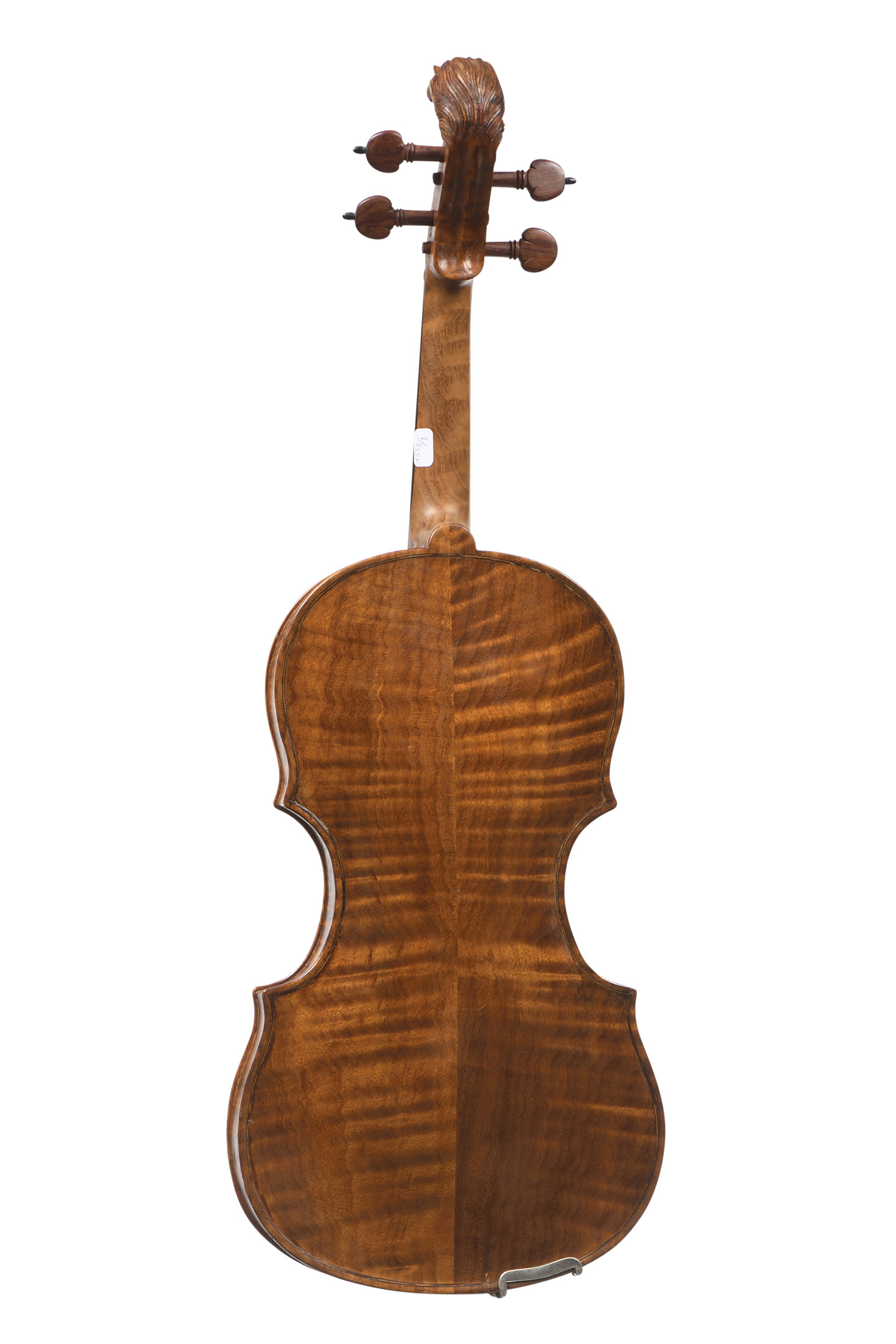 portant une signature "NGUYEN XUAN HUY... HA NOI 08/2004". Cordier sculpté. Tête de lion. Avec boite et deux archets. 355 mm.