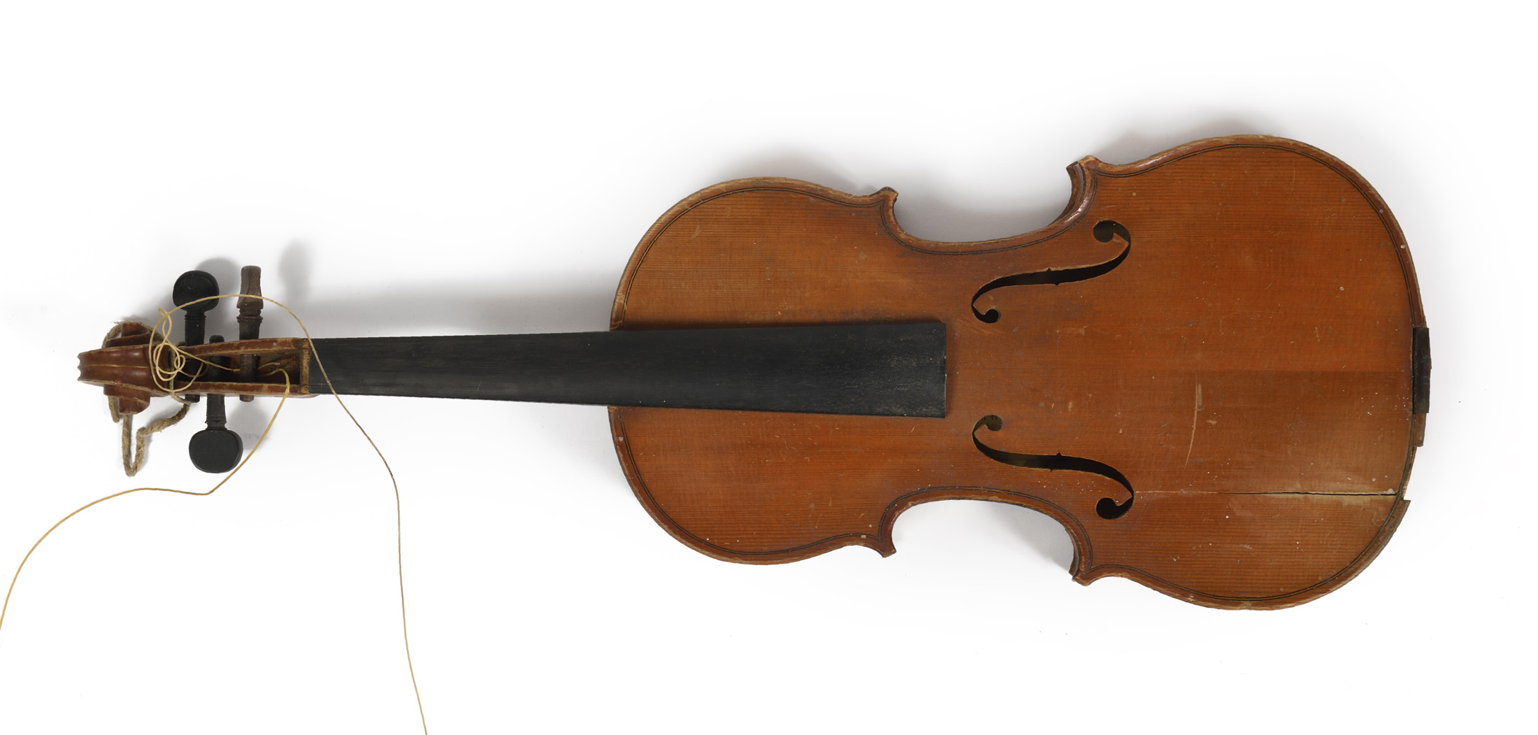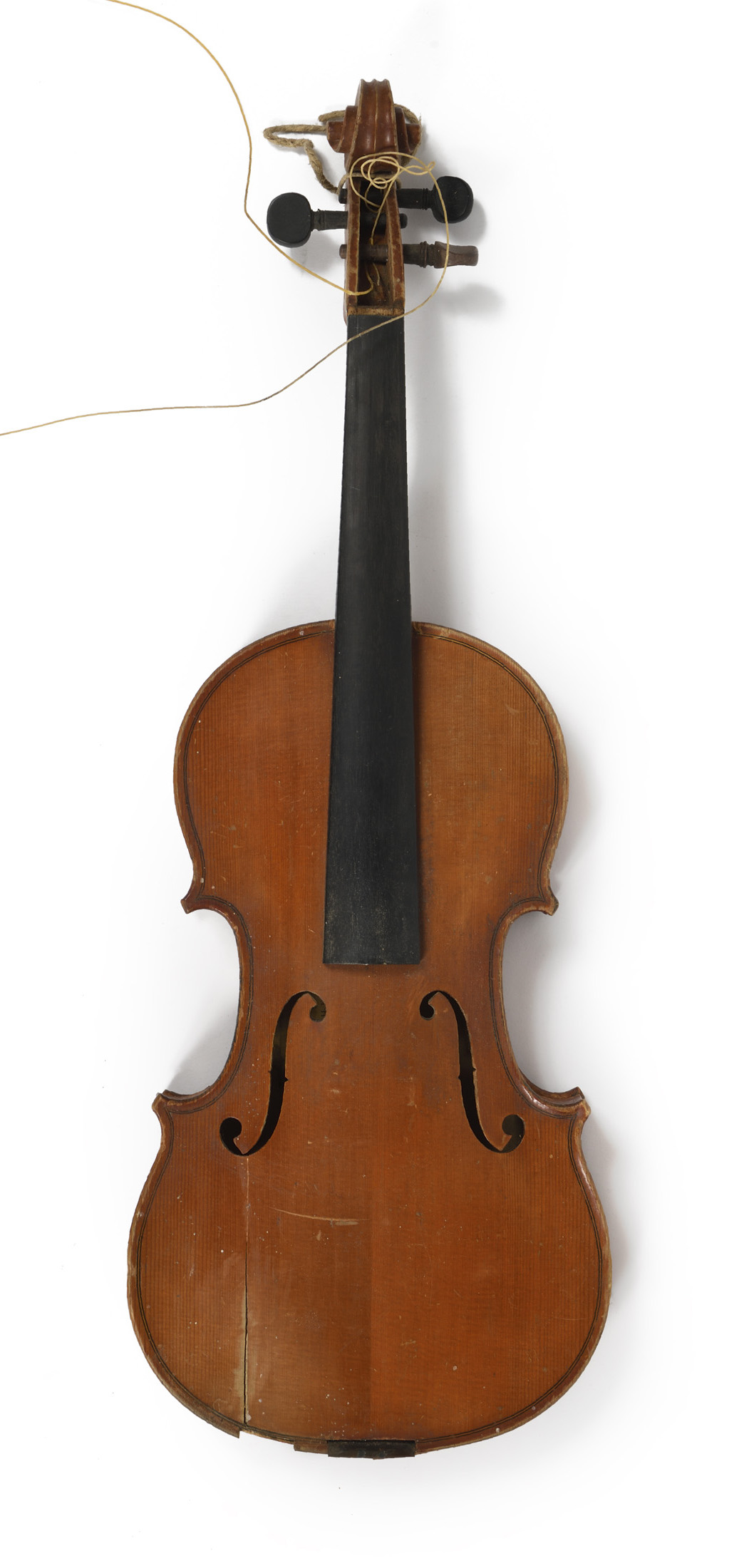 portant une étiquette apocryphe "Carlo Antonio Testore Igito maggiore de Fr. Carlo Giufeppe Tettore... 1744". Fond de deux pièces en érable. Vernis brun orangé. En morceaux: l'ensemble à restaurer. Avec un bel étui de table. 357 mm.
