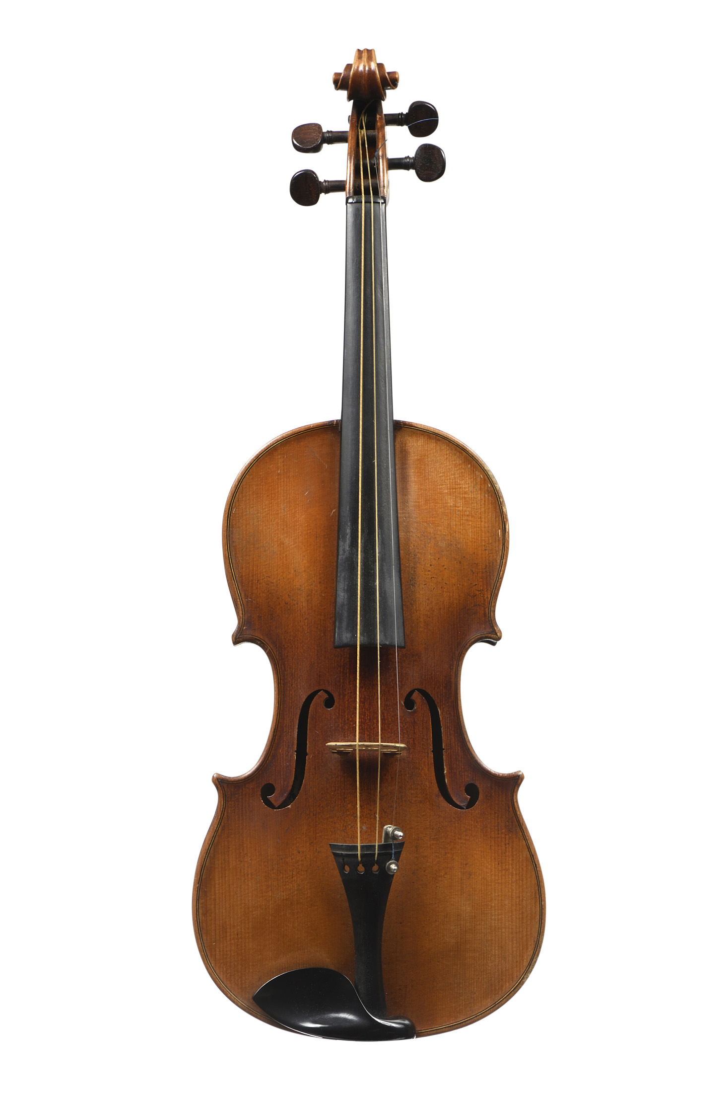fait chez Couesnon à Mirecourt, portant une étiquette "Jacobus Stainer... 1659". Fond de deux pièces en érable. Vernis brun sur fond doré. 358 mm.