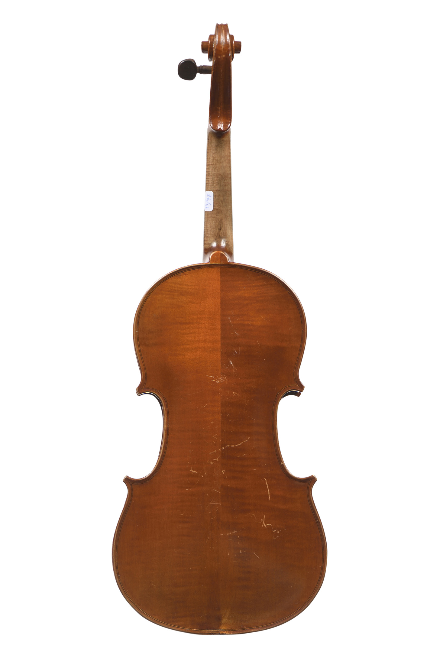 portant l'étiquette. Fond de deux pièces en érable. Vernis brun orangé. Usures.