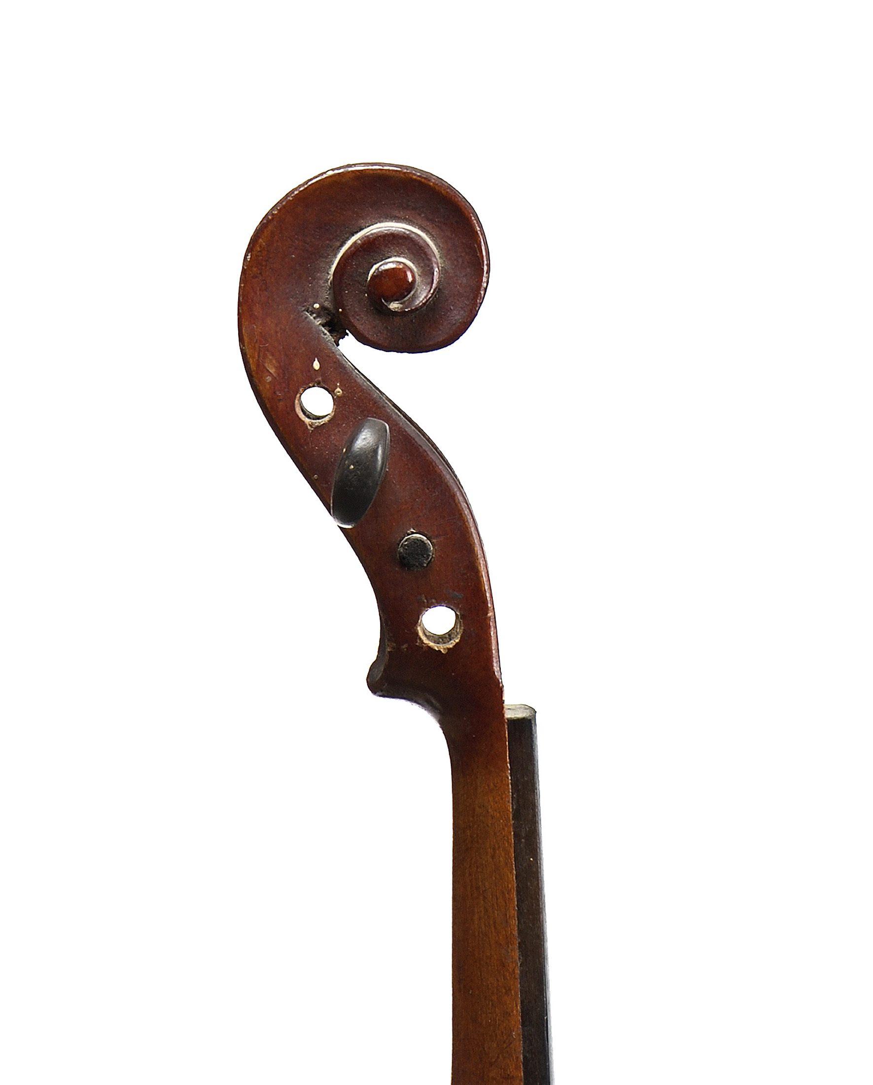 portant une étiquette "Célèbre Vosgien". Fond d'une pièce en érable. Table d'une pièce. Avec trois archets d'étude.
