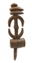 Tambour portatif en bois. Tête sculptée d'un personnage. Anciennes marques d'usage. En l'état.