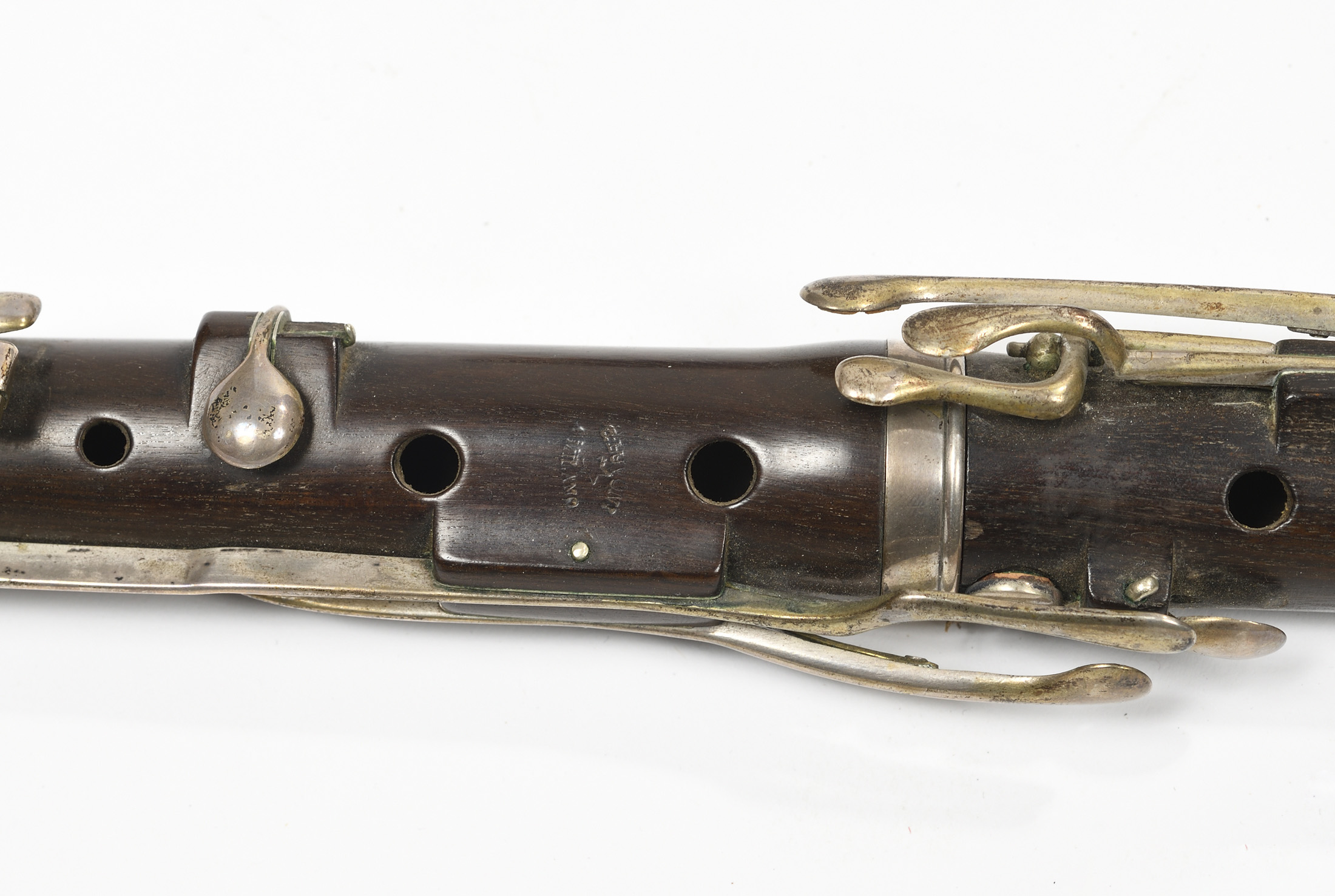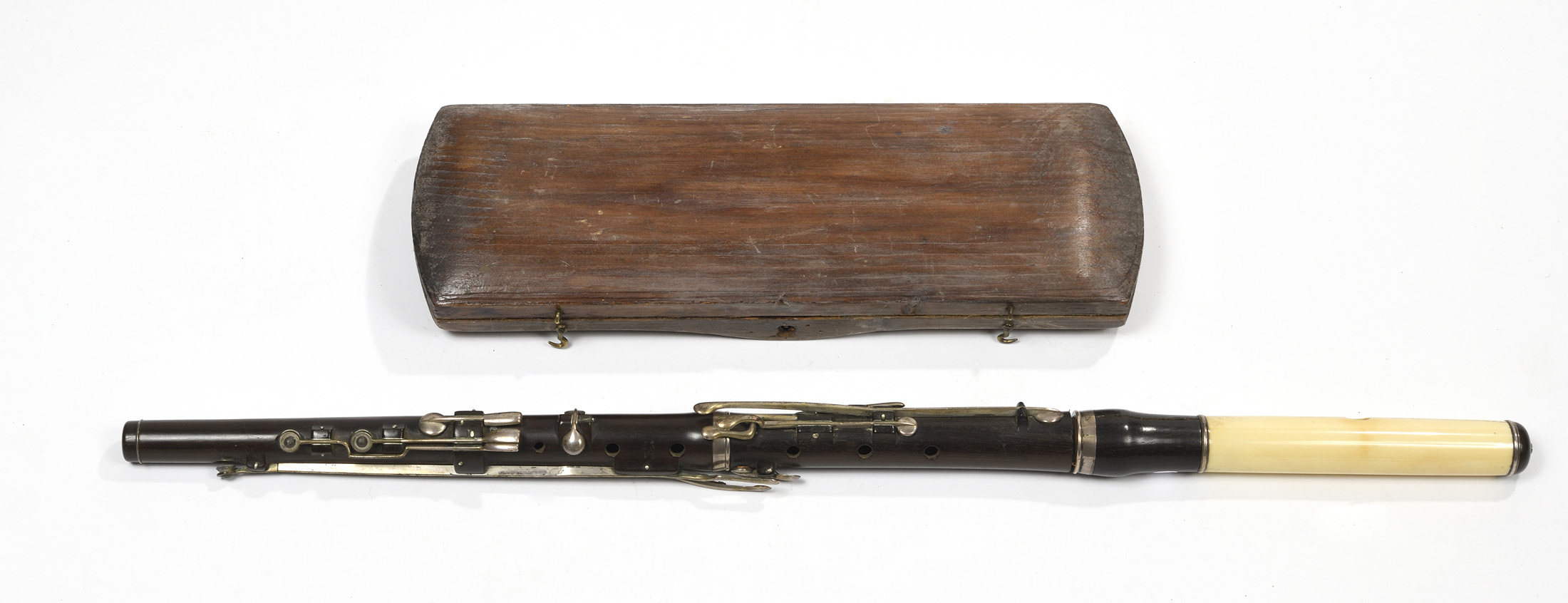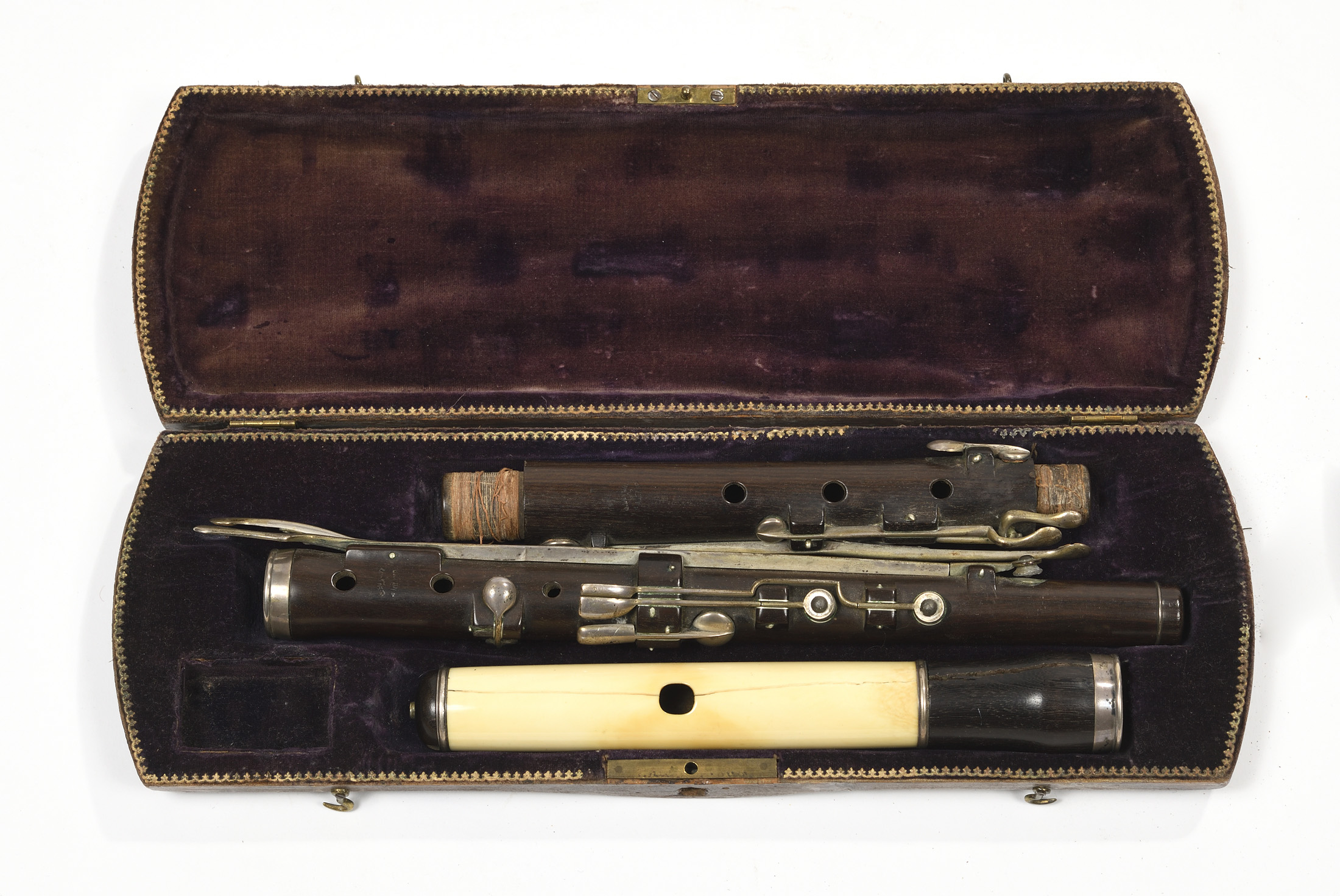 portant les marques "LUVONI MILANO". En bois de palissandre. Tête en ivoire. 10 clefs maillechort argentée.