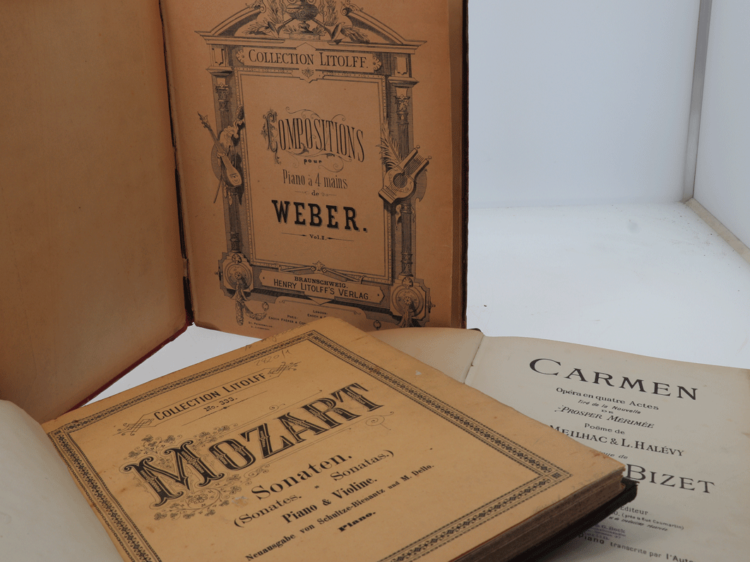 Lot de 25 livres et livret de partitions: Bizet, Beethoven, Mozart...