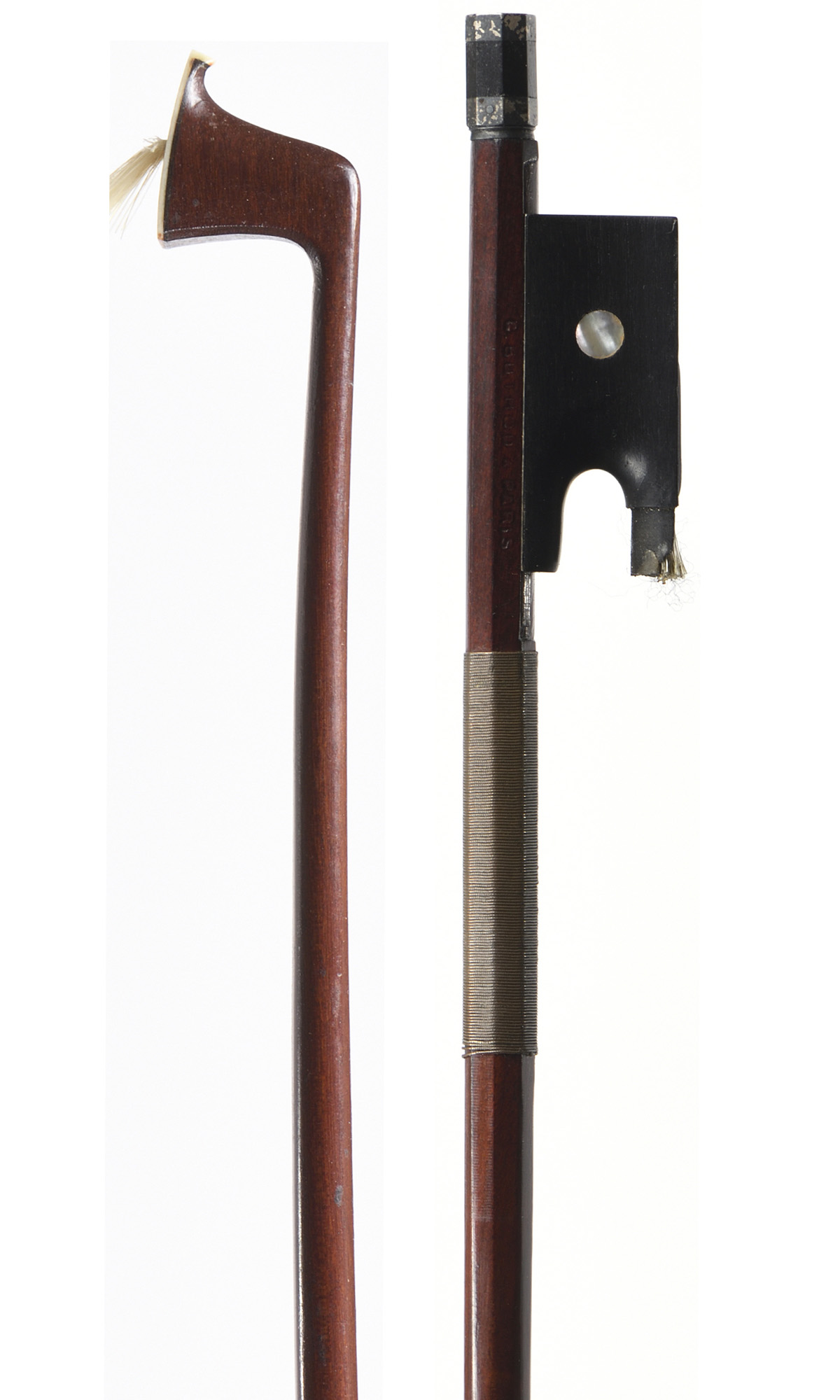 French violin bow made in Mirecourt bearing the stamp "C.BUTHOD A PARIS". JTL Workshop.