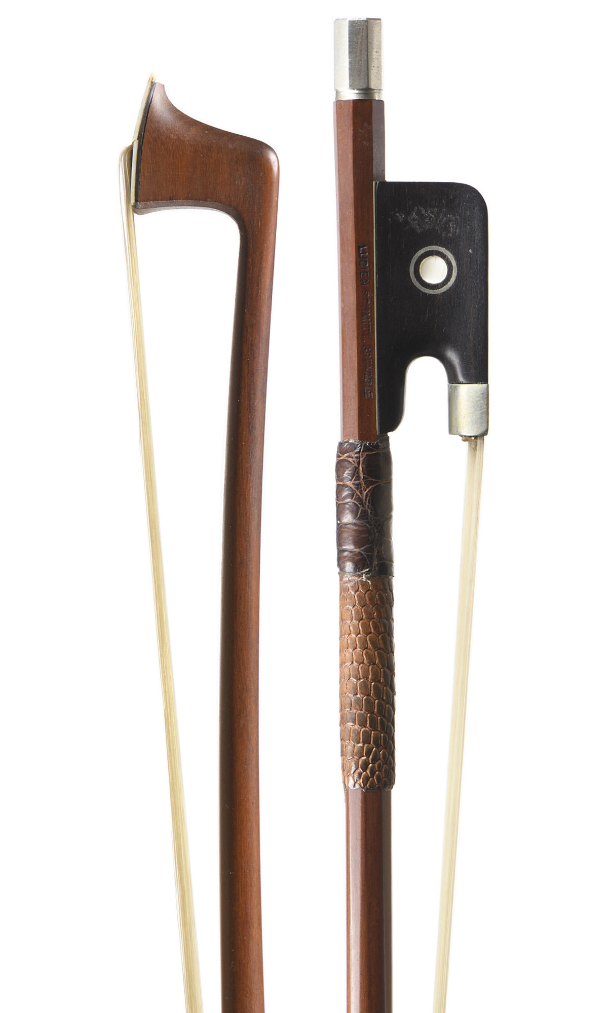 French violin bow probably by Lucien Schmitt bearing the stamp "LUCIEN SCHMITT GRENOBLE"