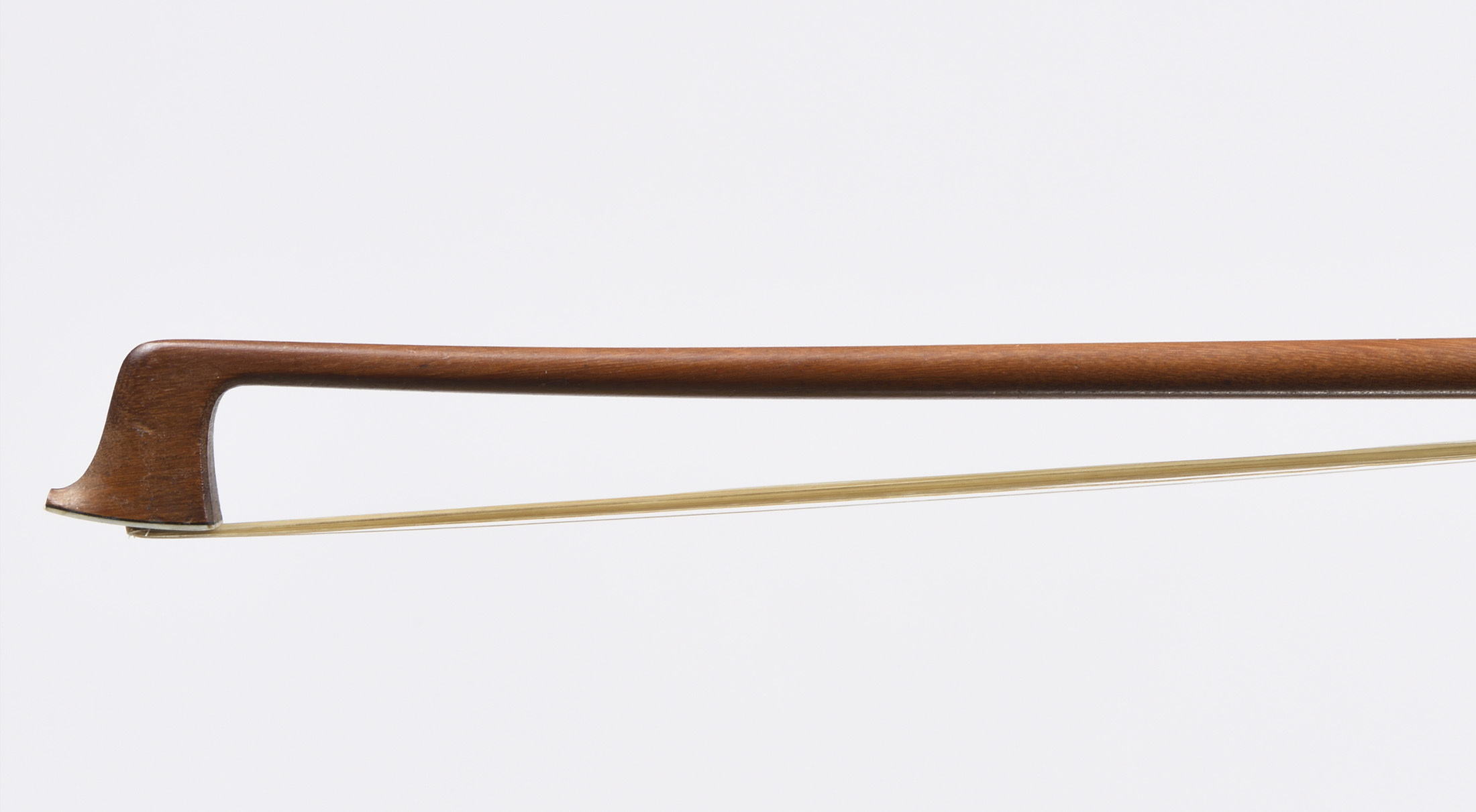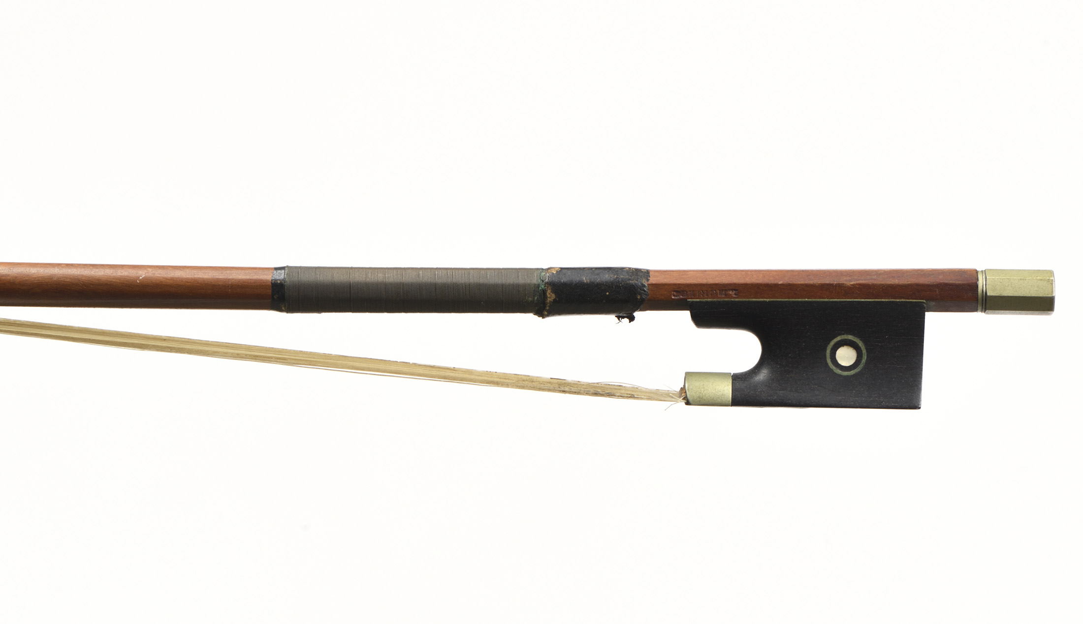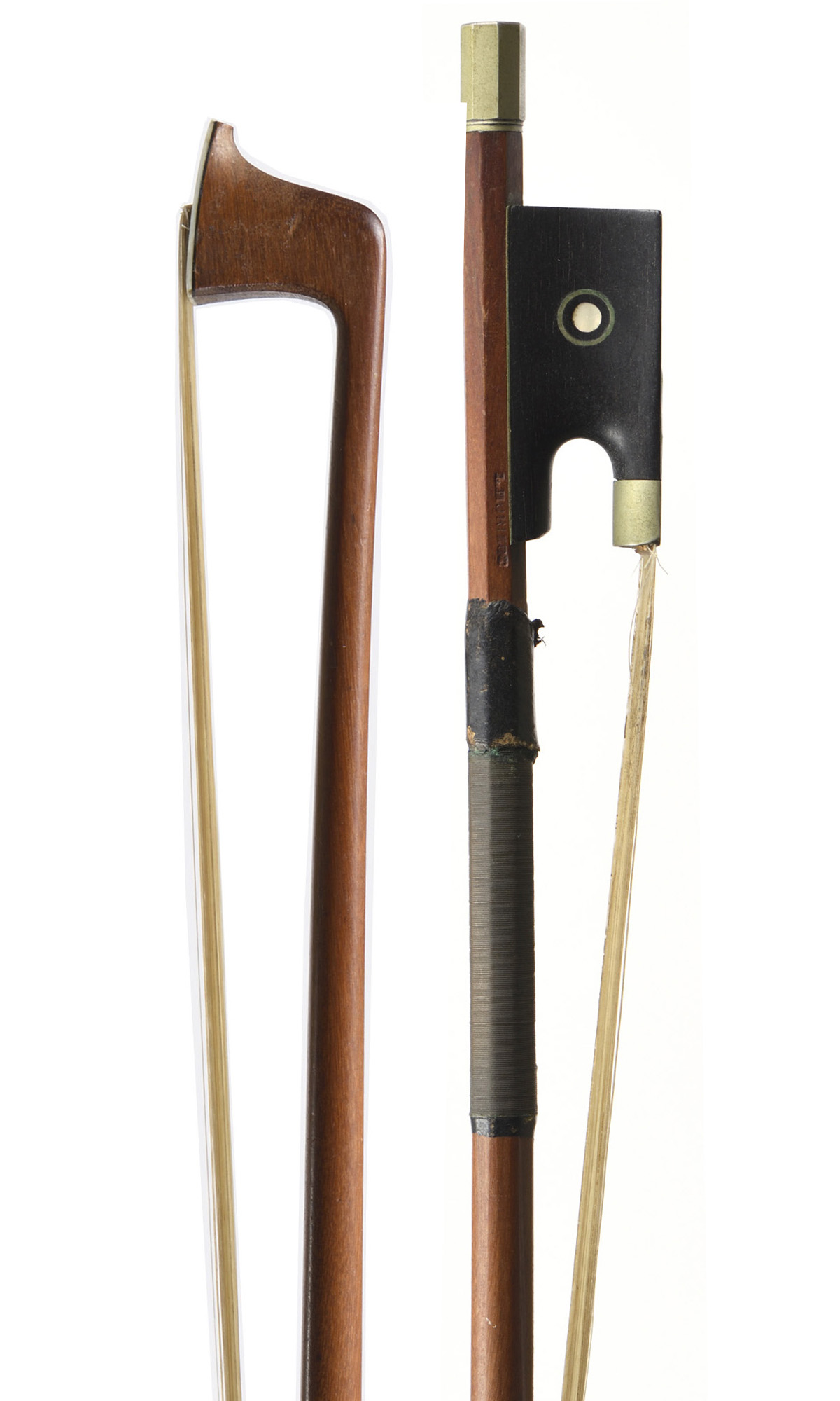 dont il porte la marque au fer "L.MORIZOT", Baguette ronde en bois de pernambouc. Hausse ébène montée maillechort. 729 mm. 55g avec garniture argent sur soie.