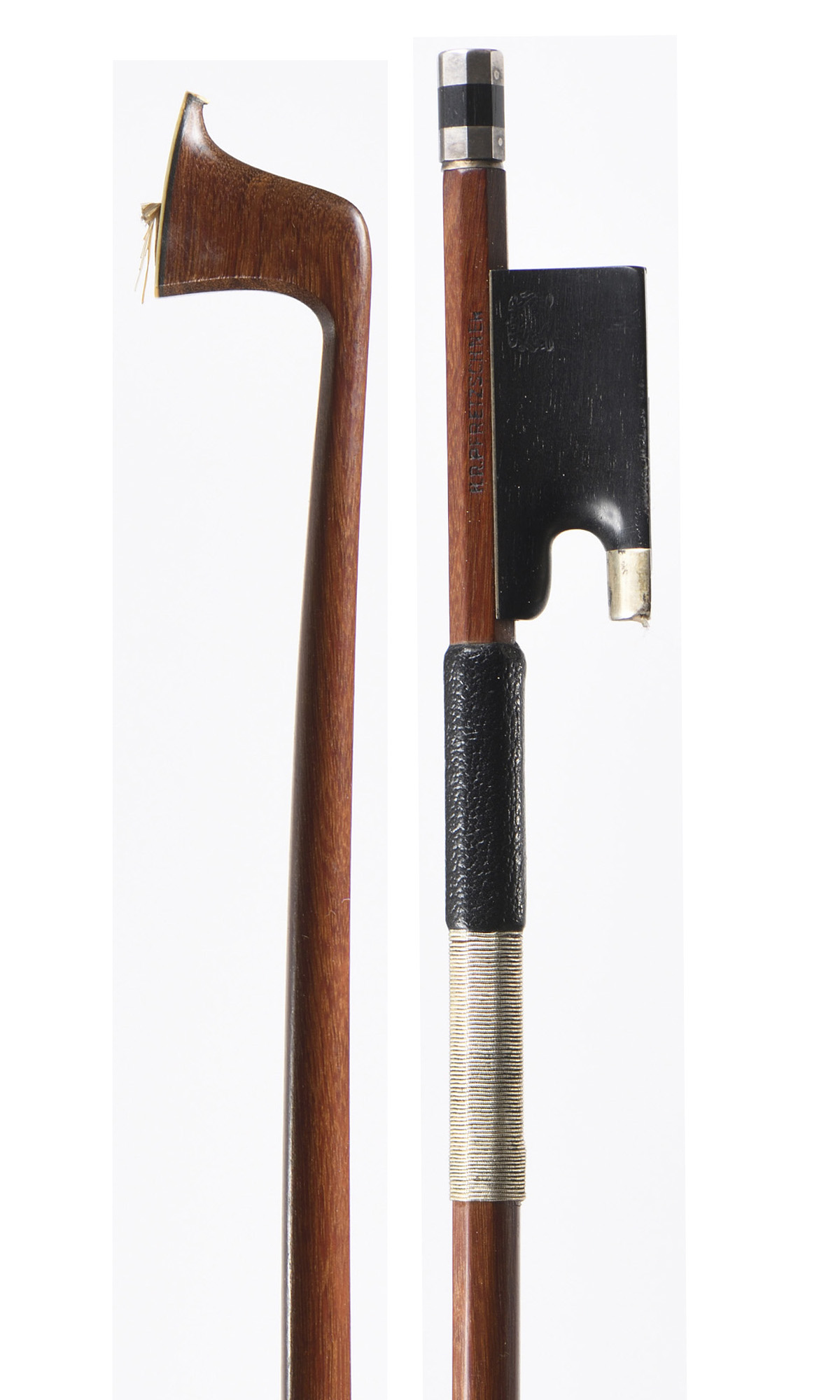 German violin bow by H.R.PFRETZSCHNER bearing the stamp.