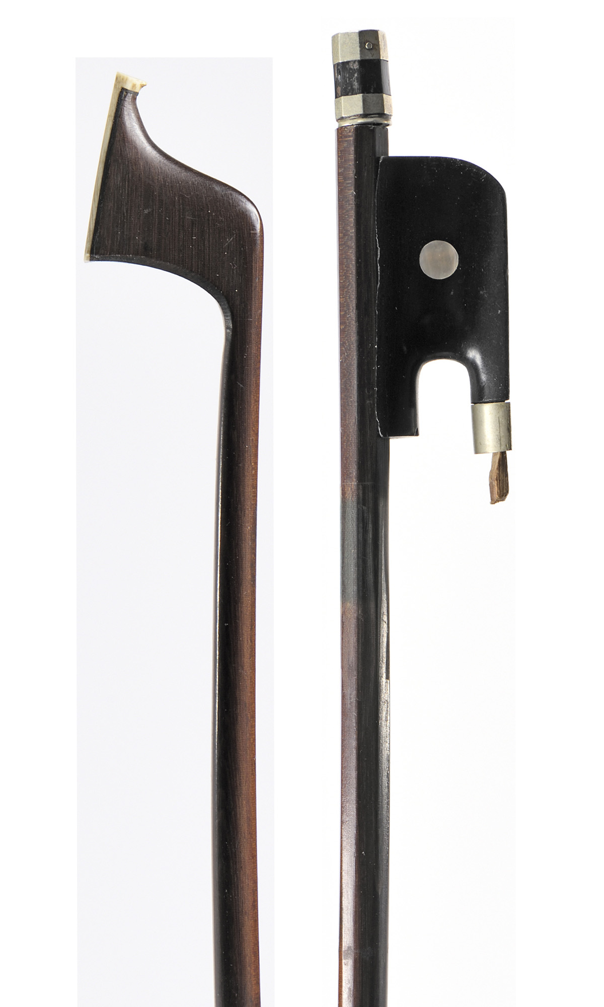 Cello bow XIXth century probably made in France. Exotic wood.
