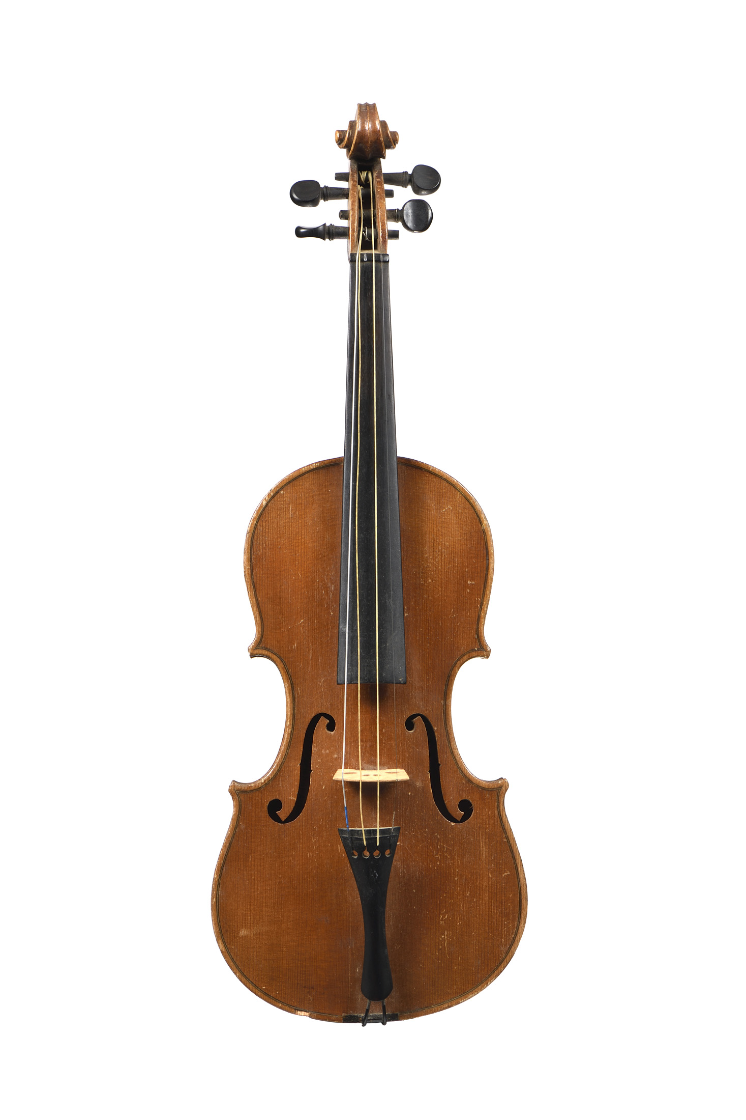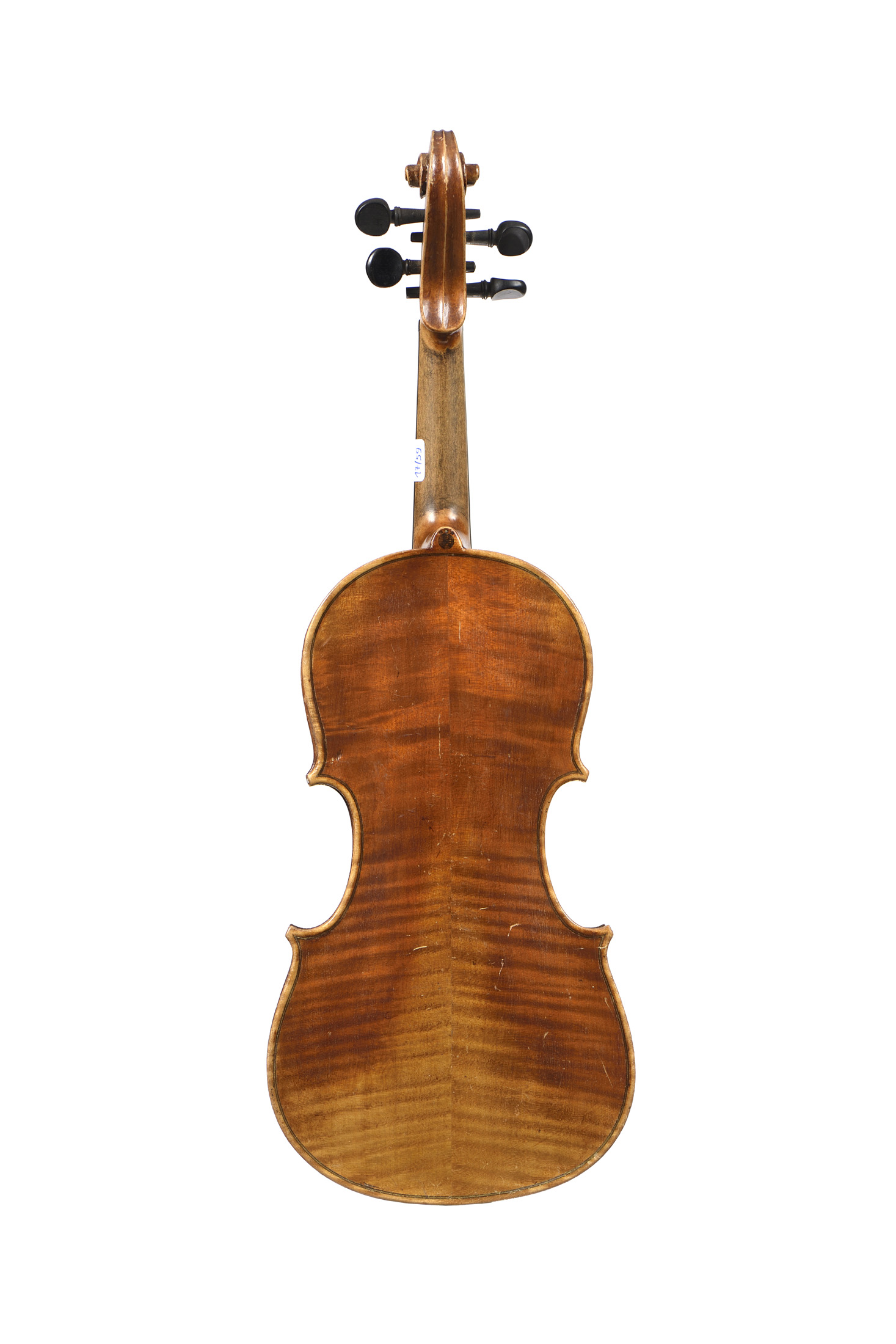 portant une étiquette "Antonius Stradivarius... 1735" et une marque au talon du manche. Fond de deux pièces en érable. Vernis brun sur fond doré. Bon état général.
