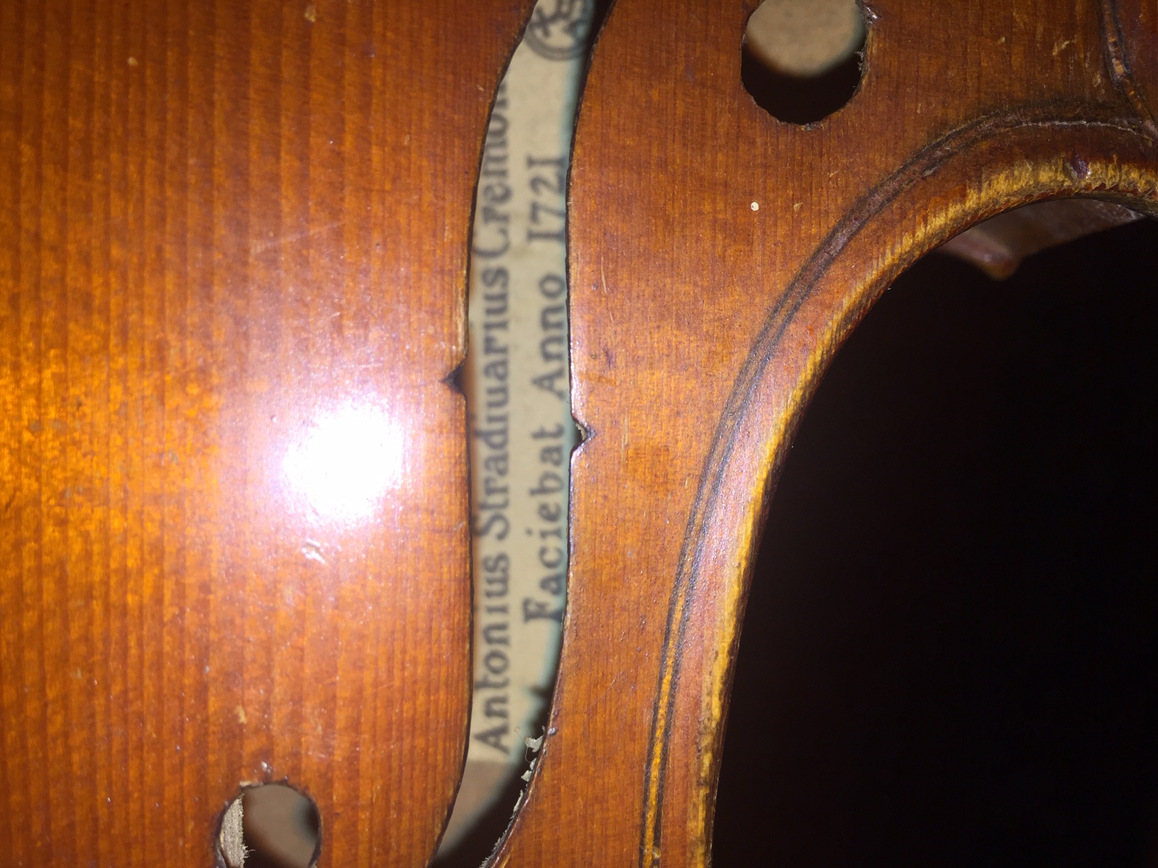 portant une étiquette "Copie de Antonius Stradivarius 1721." Fond d'une pièces en érable. Vernis brun orangé sur fond doré. Bon état général. Usures.