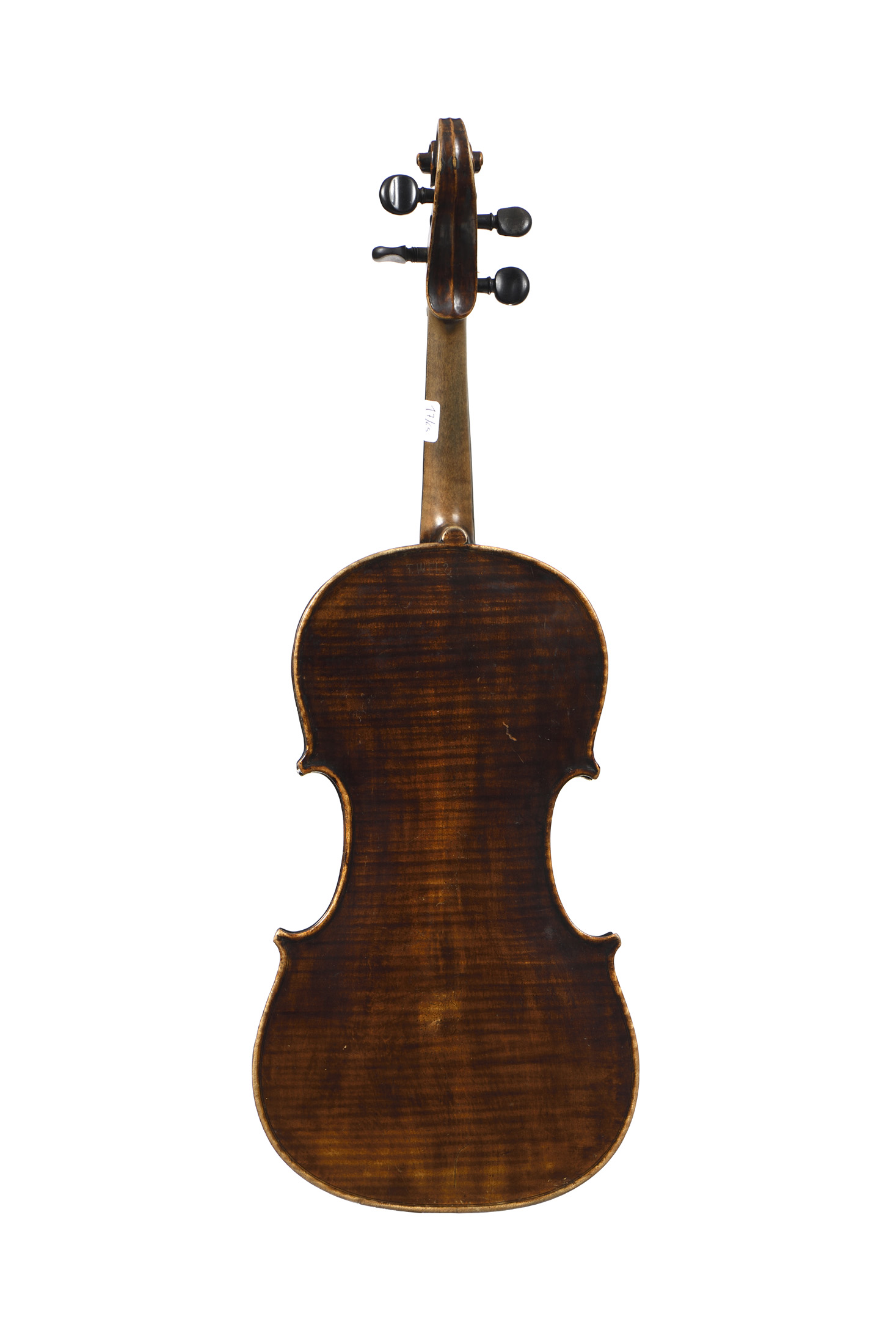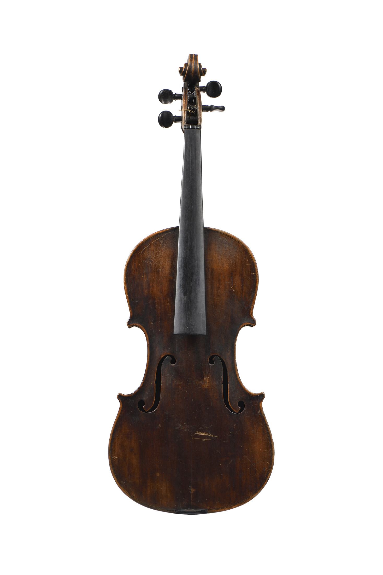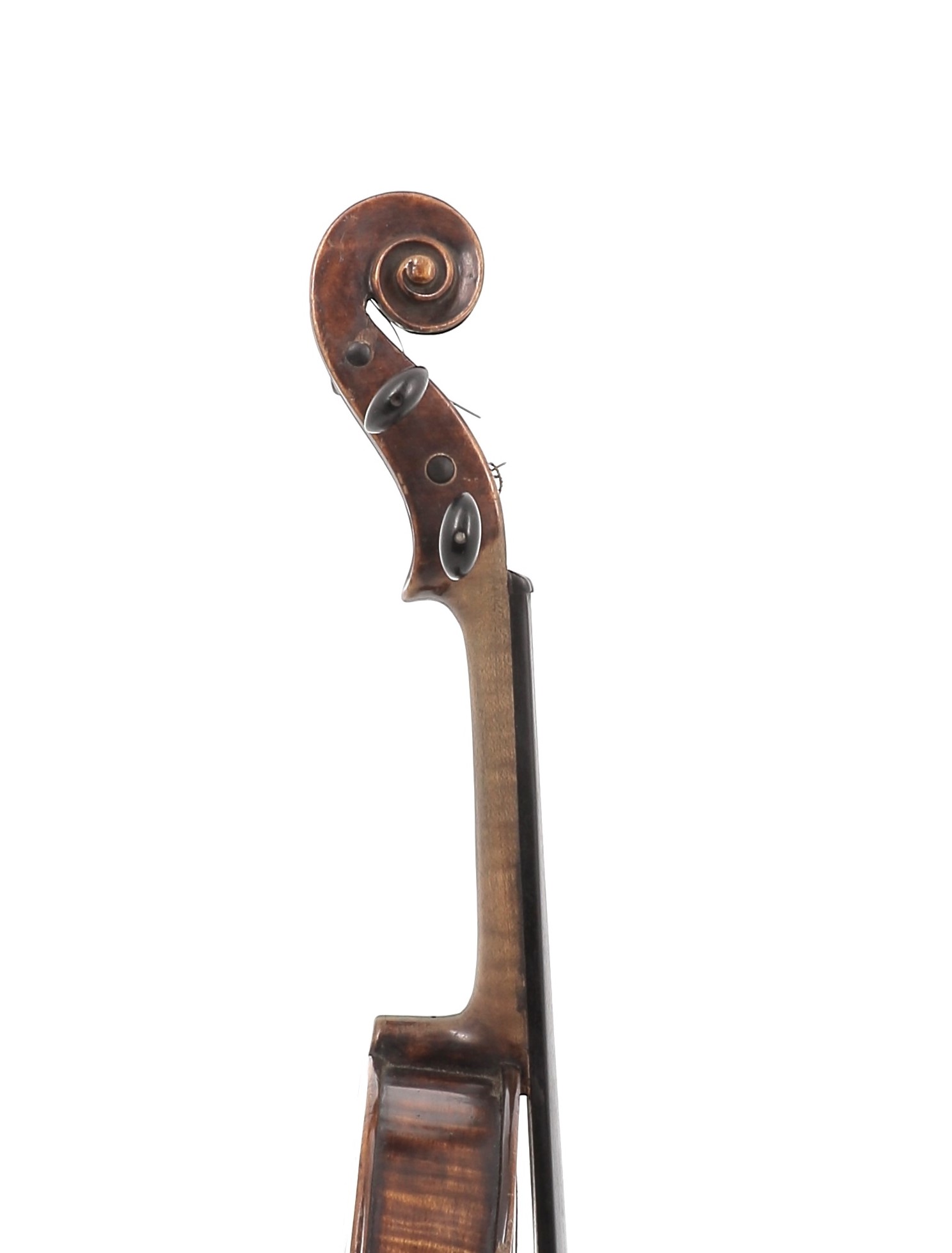 Fait en Allemagne sans étiquette. Fond d'une pièce en érable. Vernis brun sur fond doré. Diverses cassures à restaurer. 357 mm.