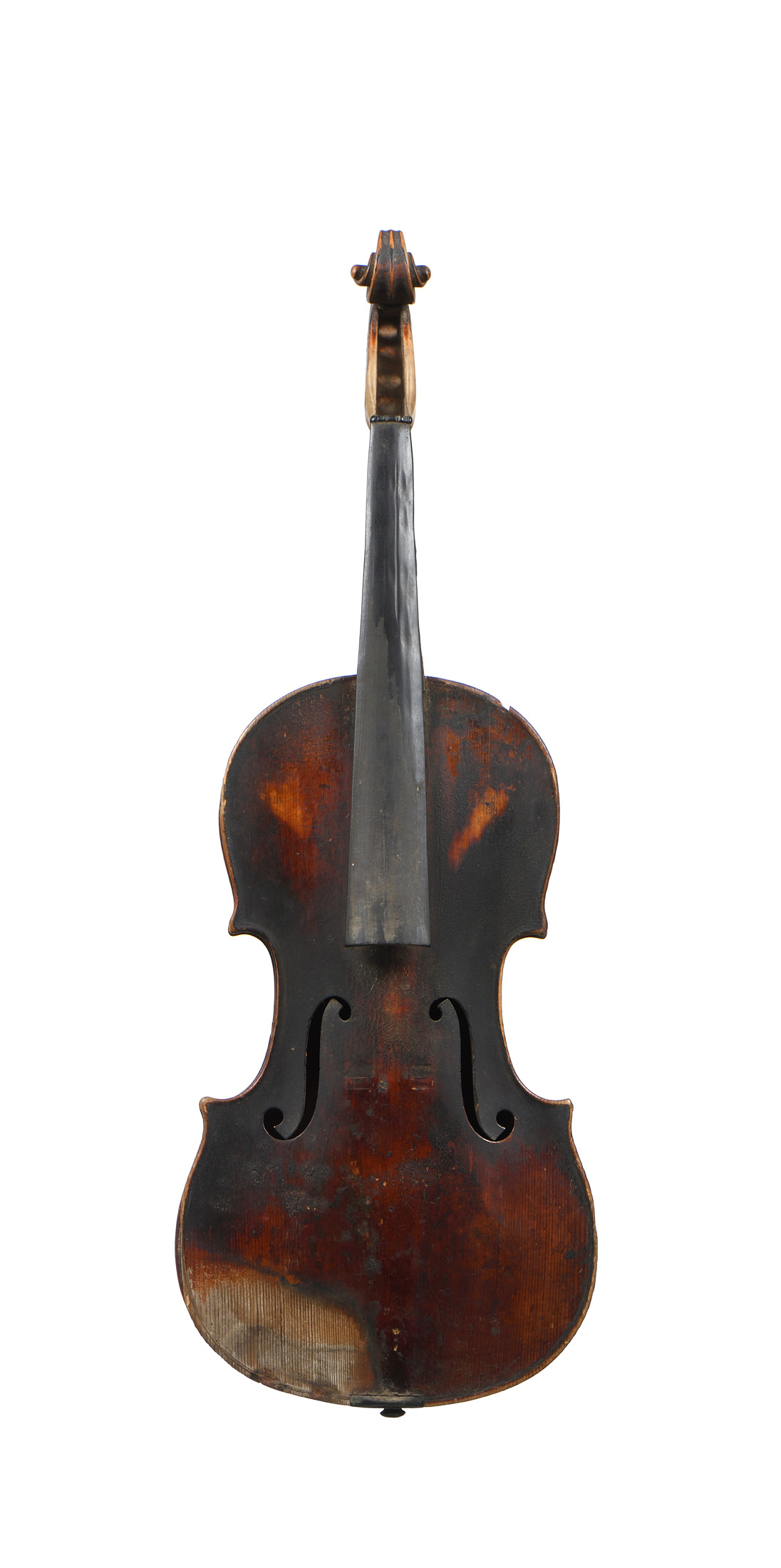 portant une étiquette "Gagliano Nicolos Neaptes 1701". Fond de deux pièces. Vernis brun rouge sur fond doré. 359 mm. Diverses cassures réparées.
