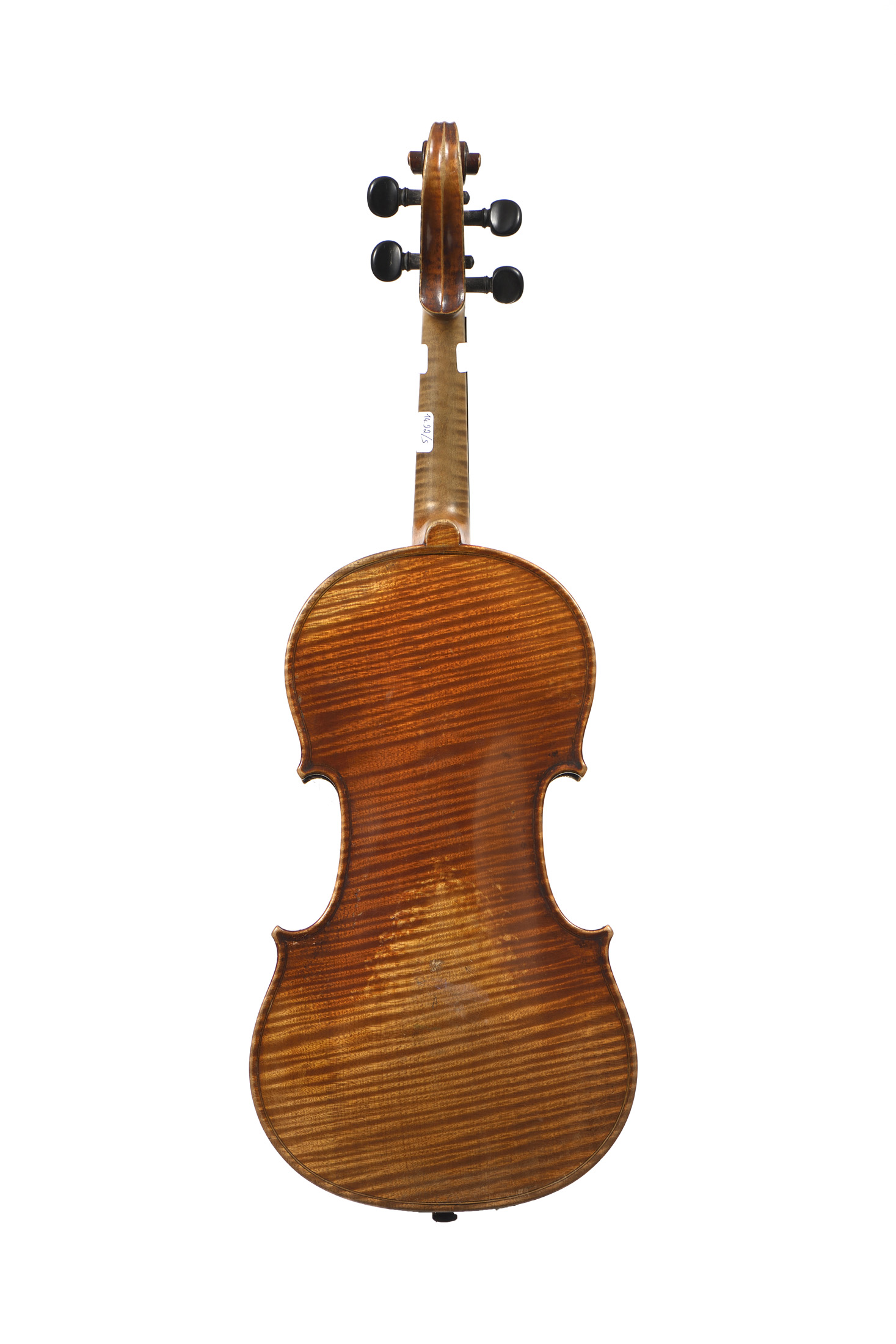 Portant une étiquette "Antonius Stradivarius... 1716" et une marque manuscrite à la plume "Grandjon fils à Mirecourt". Fond d'une pièce en bel érable. Vernis brun doré. Avec deux archets. 359 mm.